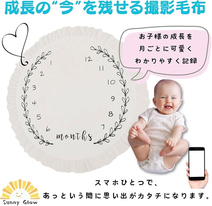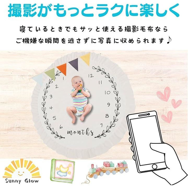 赤ちゃん ベビーマット 月齢フォト 円形 ニューボーンフォト セルフ サニーマット シンプル 撮影 小道具 背景