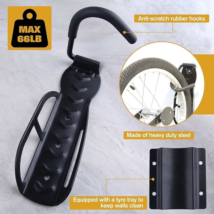 自転車 スタンド 壁掛け 縦置き タイヤトレイ付き 固定式 小屋用 垂直 自転車壁掛けフック 室内 簡単設置 収納用 耐荷重30kgまで