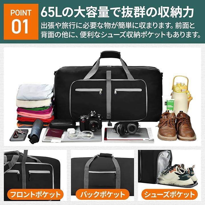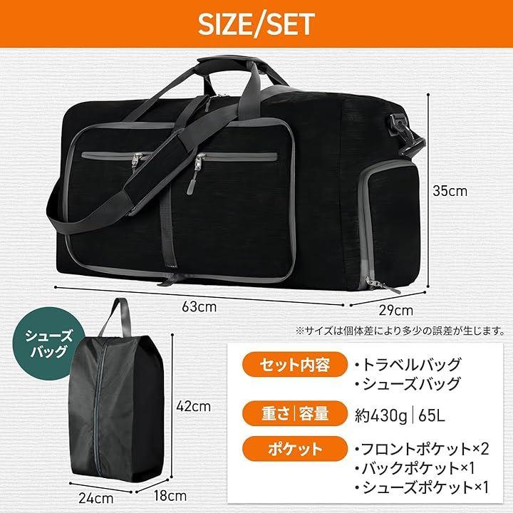 旅行バッグ トラベルバッグ 折りたたみ ボストンバッグ ダッフルバッグ キャリーオンバッグ 大容量 旅行カバン 65L 防水