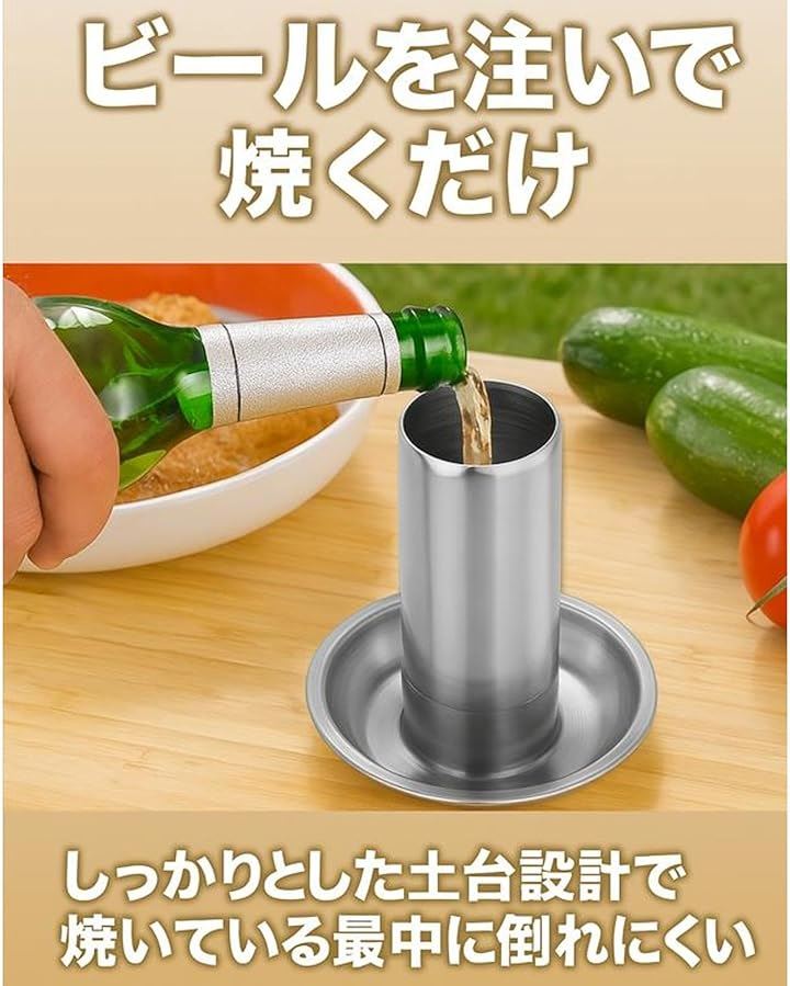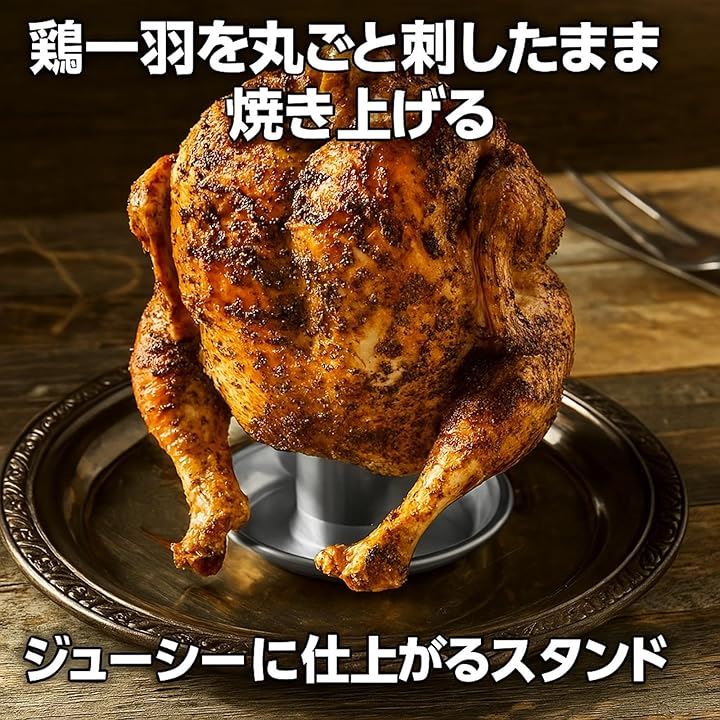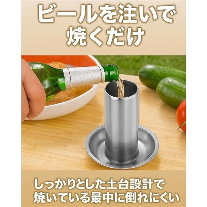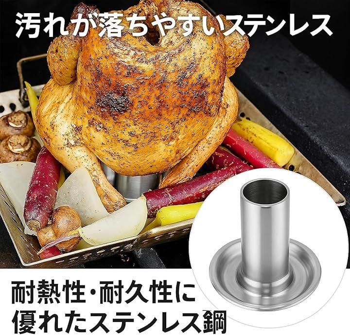 チキンロースターラック ビア缶チキン用スタンド テンレス鋼 屋外キャンプ BBQ バーベキュー ホルダー式