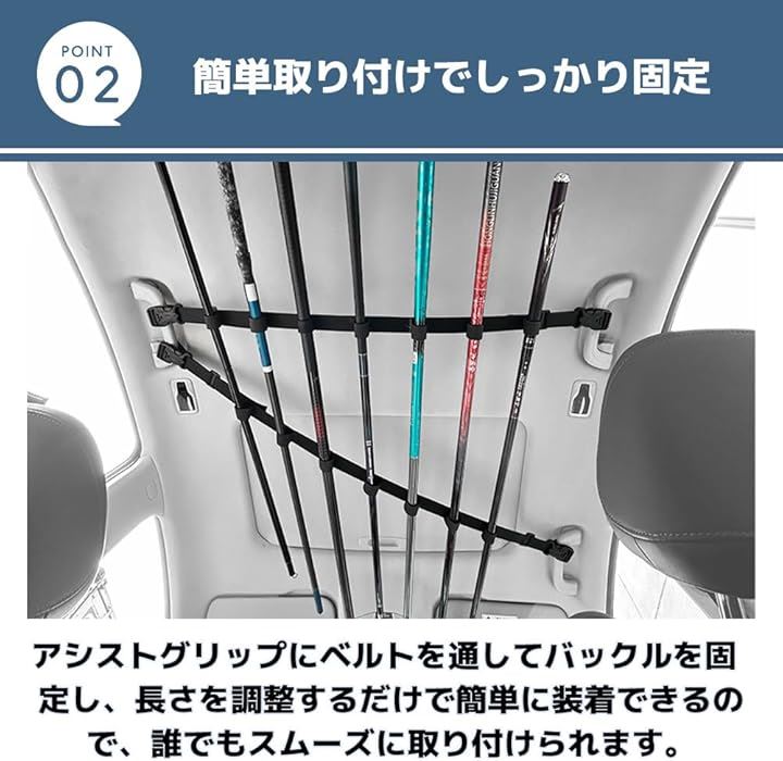 ロッドホルダー 車 釣り竿ホルダー ストラップ 固定 マジック式