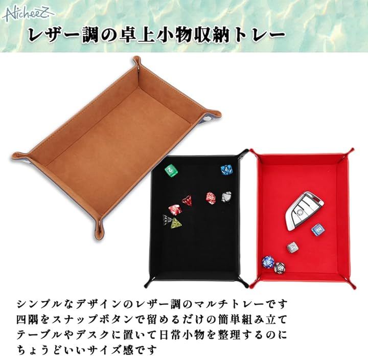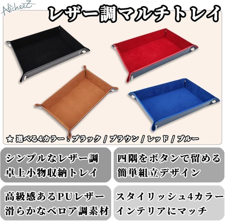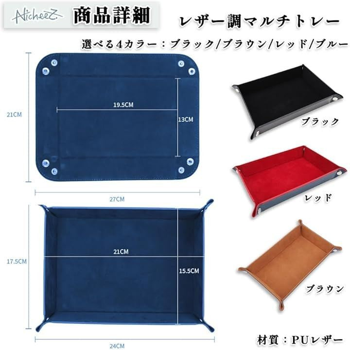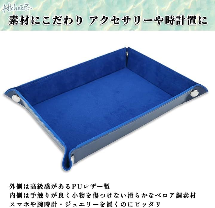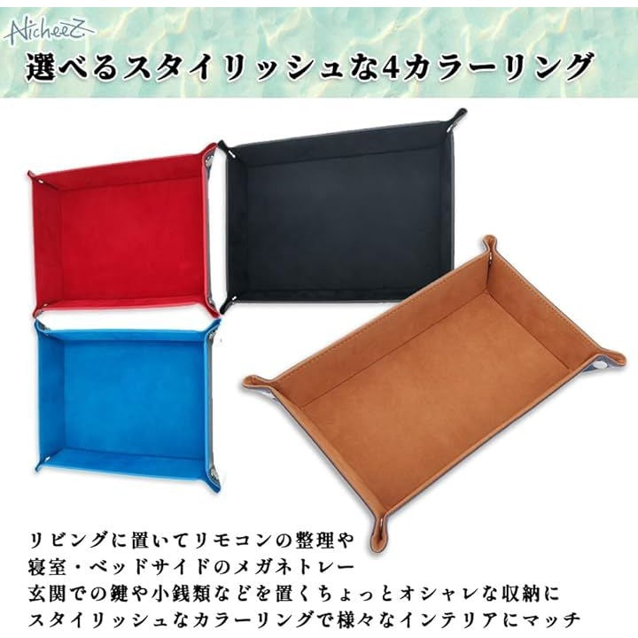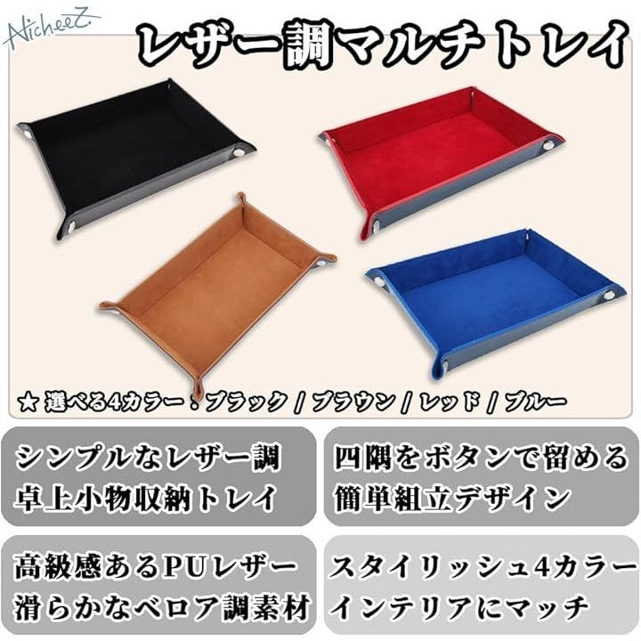 レザー トレイ 小物 入れ ベロア 貴重品 ジュエリー アクセサリー 長方形 折りたたみ式 本革調