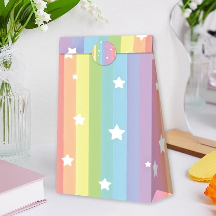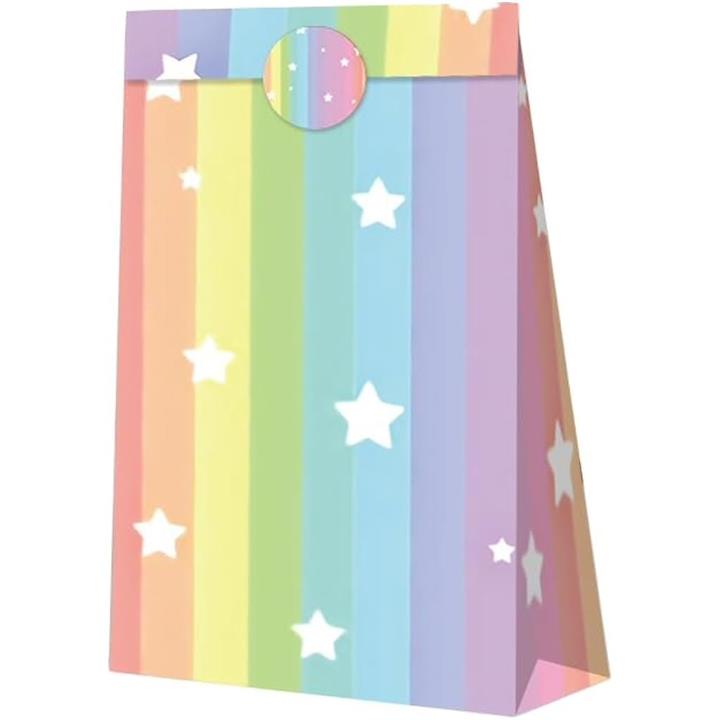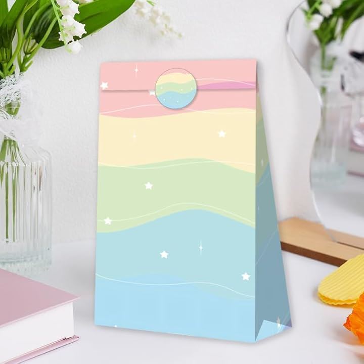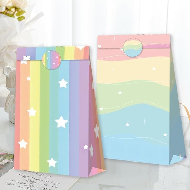 ギフトバッグ 角底袋 20枚セット 紙袋 虹柄 21x12x8cm