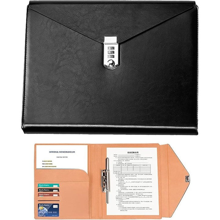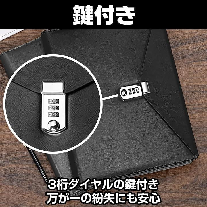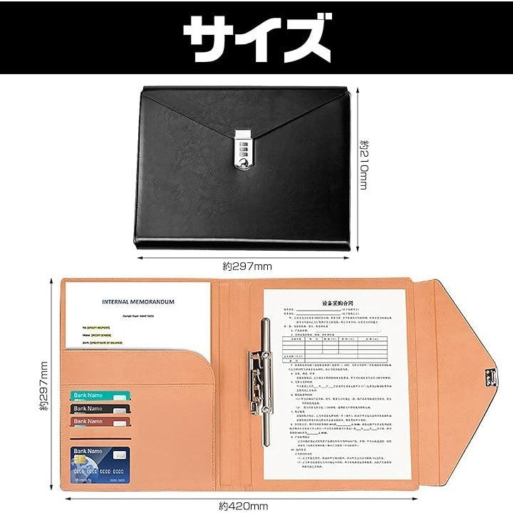 クリップボード バインダー 鍵付き ダイヤル式 二つ折り 重要書類 名刺入れ 書類収納ケース ビジネス オフィス 会議用