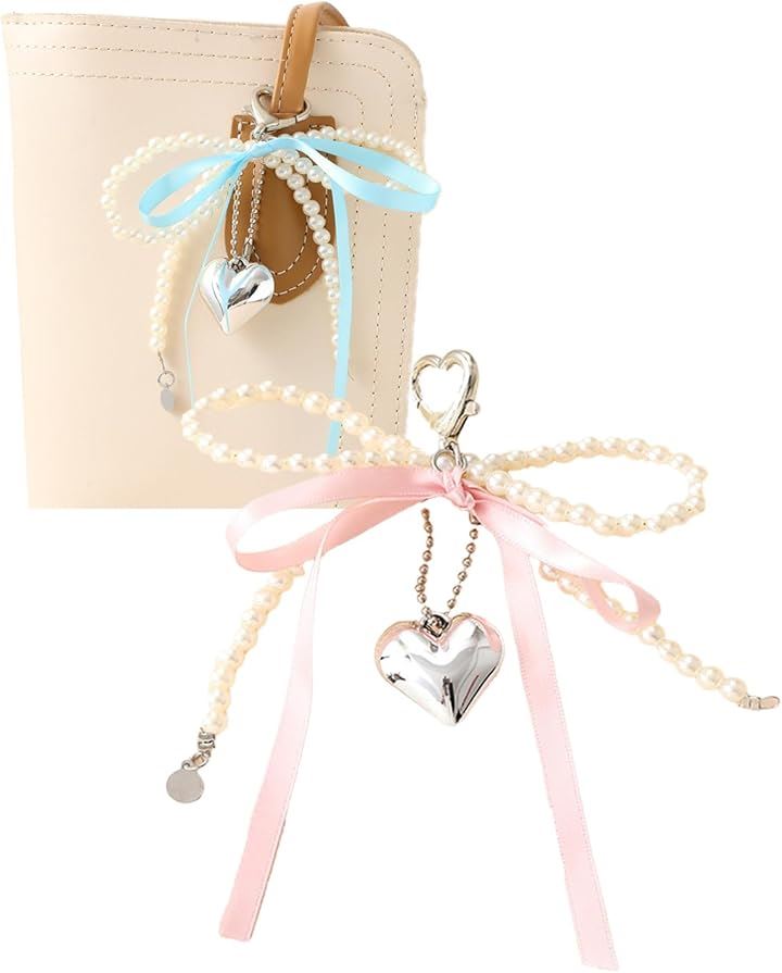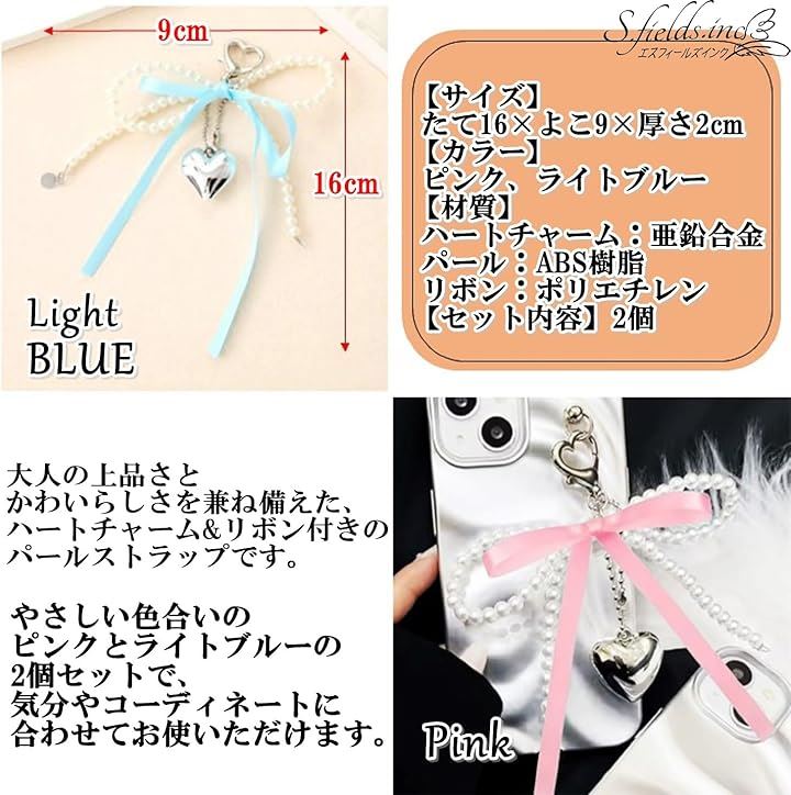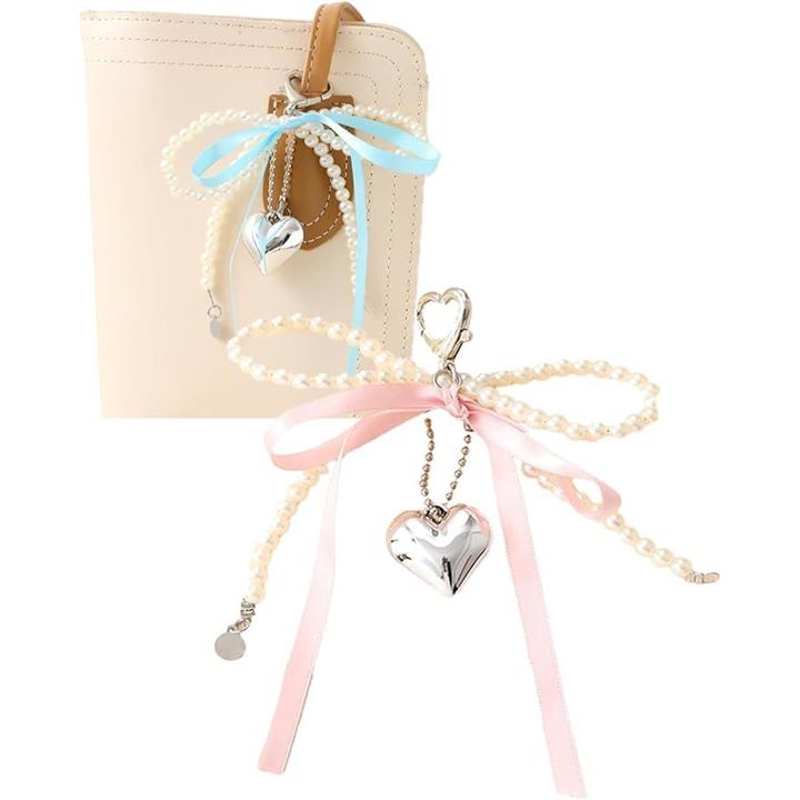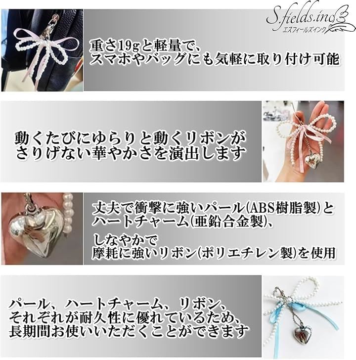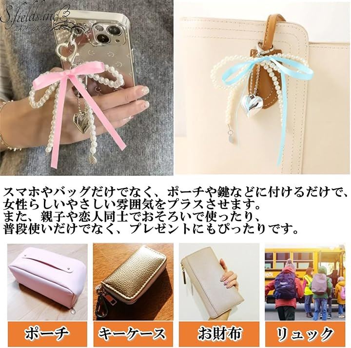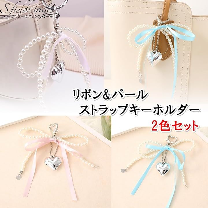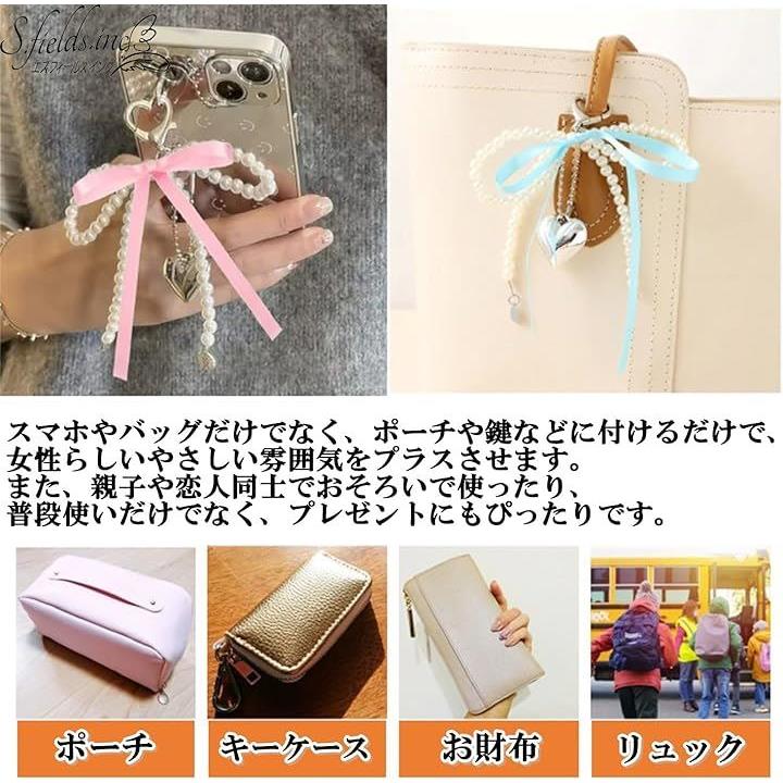 ストラップ キーホルダー 2個セット ハート チャーム リボンパール スマホ バッグ 蝶結び