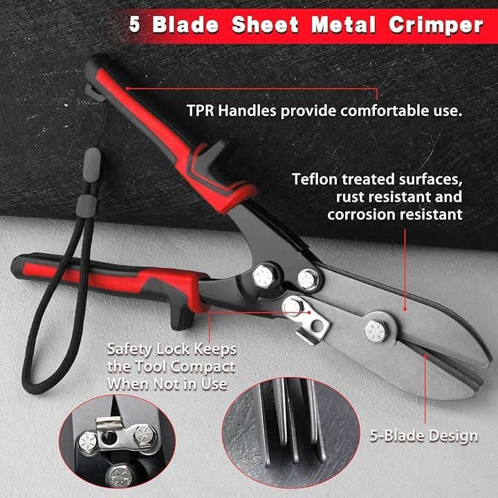 5枚刃クリンパー 5枚刃板金クリンパーツール 5枚刃ストレートクリンパー 板金圧着工具 深さ4mm 24-28ゲージ ストーブパイプクリンパーツール 樋エンドキャップ ダウンスパウトとストーブパイプ用