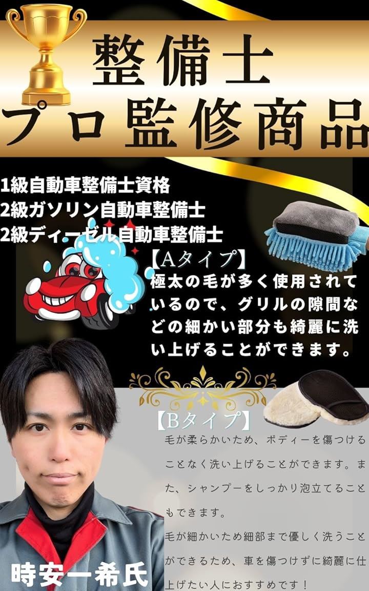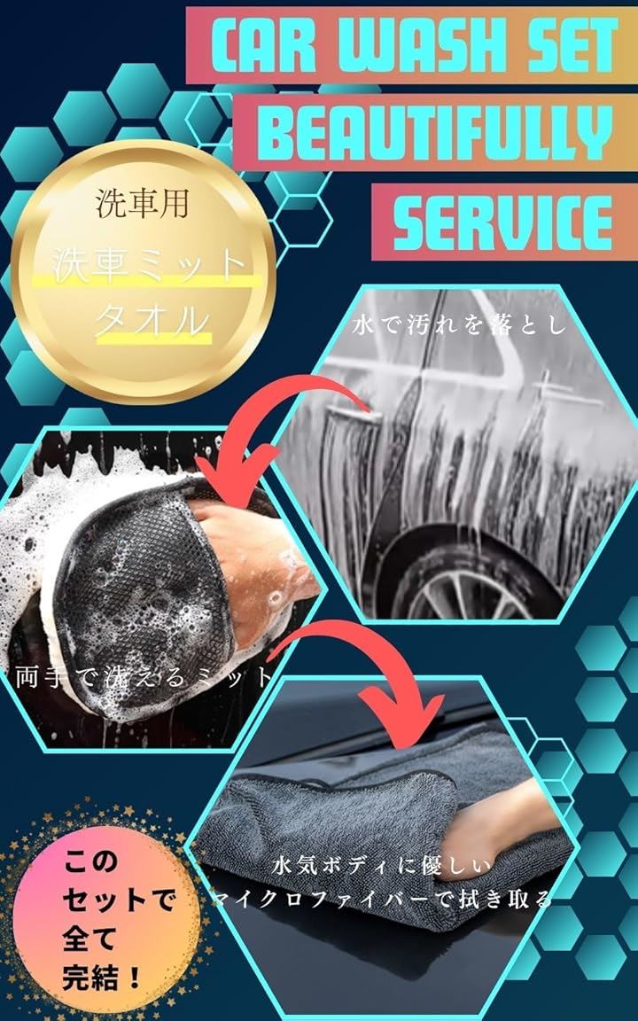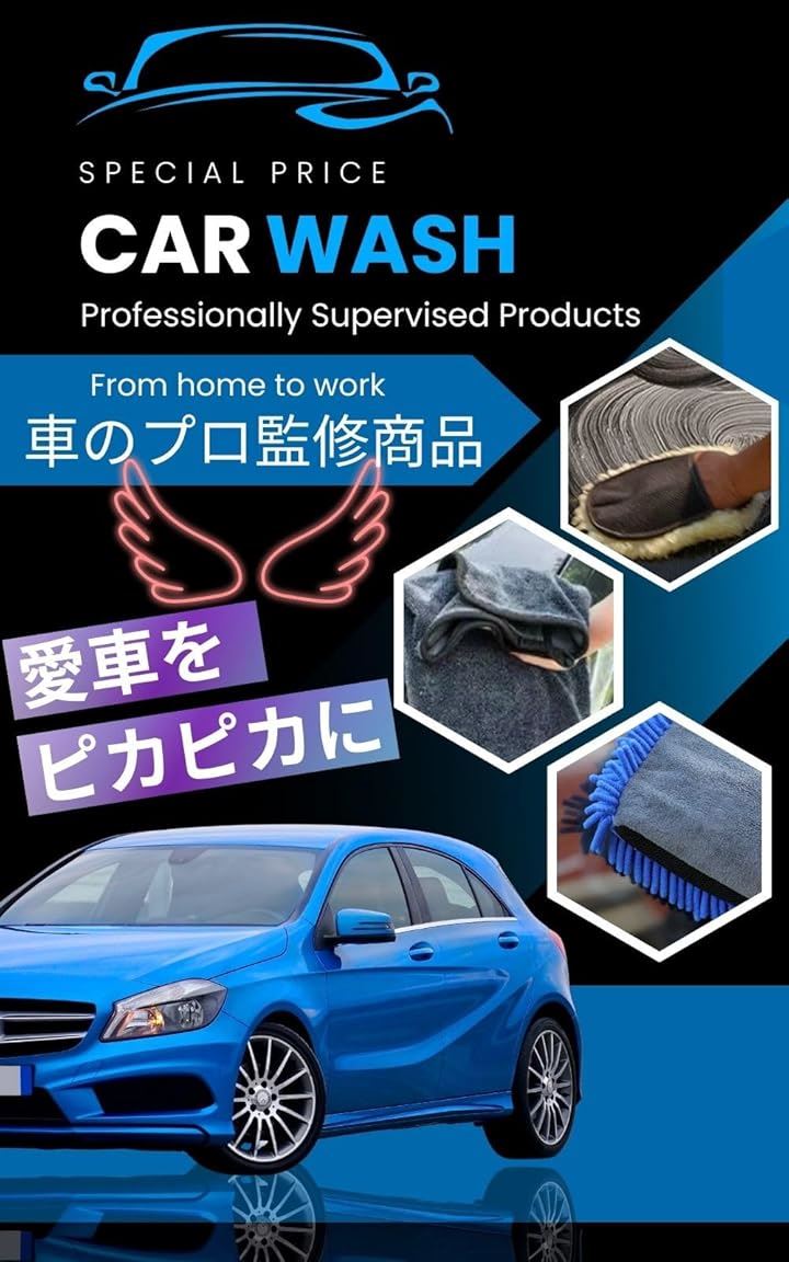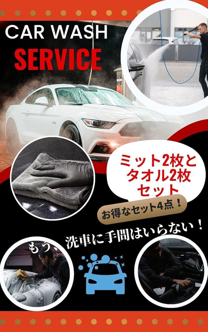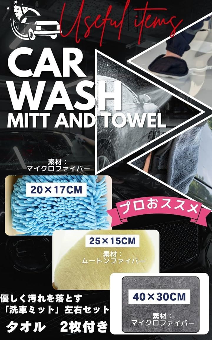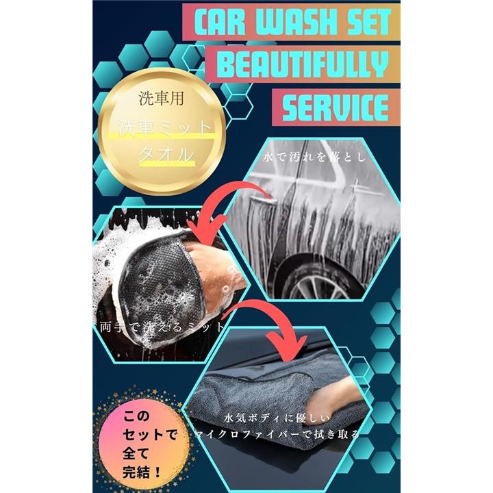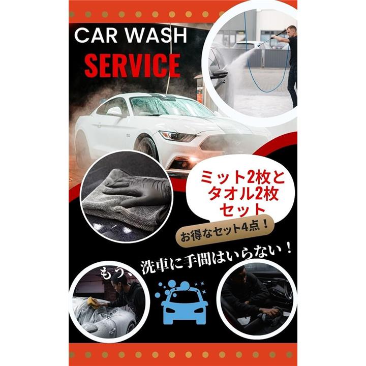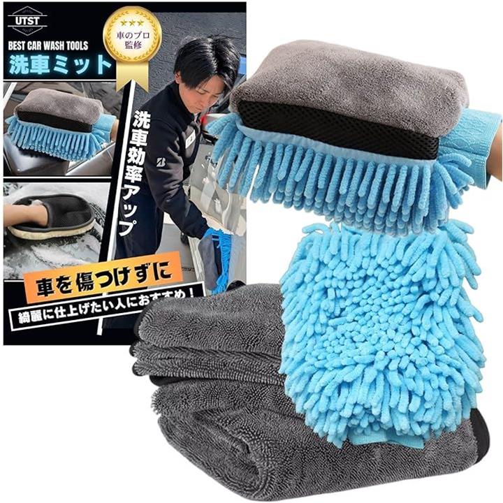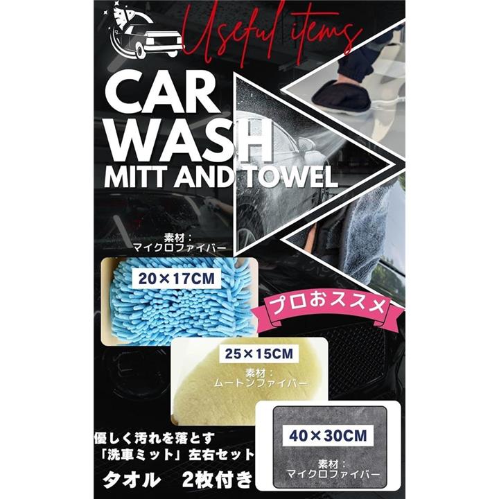 洗車用ミット 吸水タオル2枚セット 洗車グローブ マイクロファイバー 洗車タオル 洗車グッズ