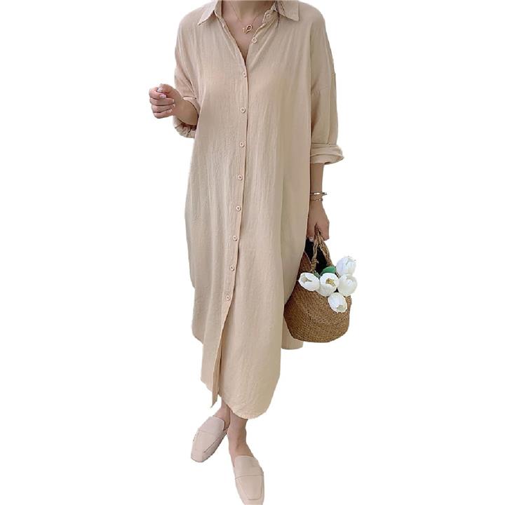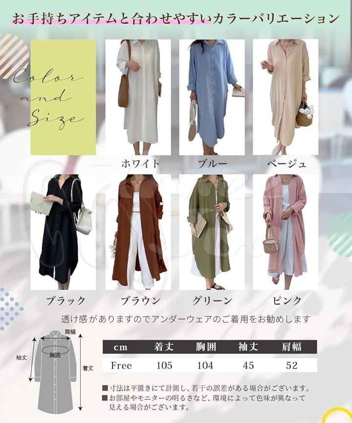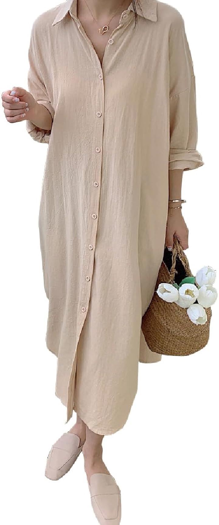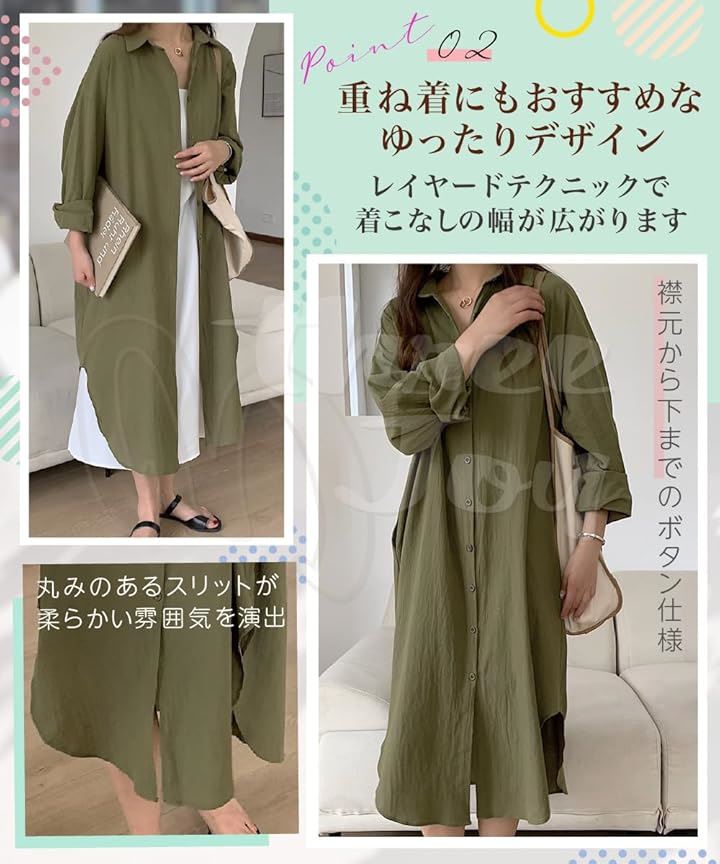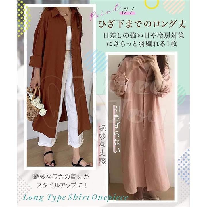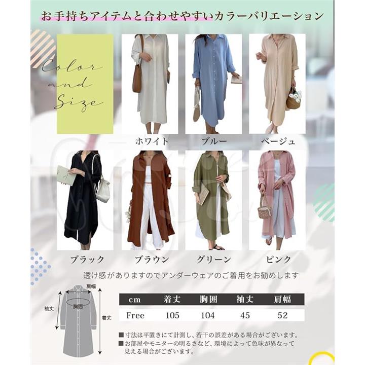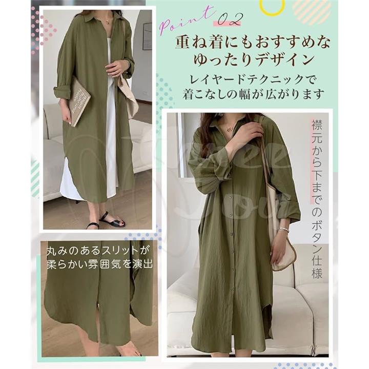 ロングワンピース レディース シャツワンピ シャツワンピース ロング丈 大きいサイズ マキシ丈 長袖 おしゃれ aライン