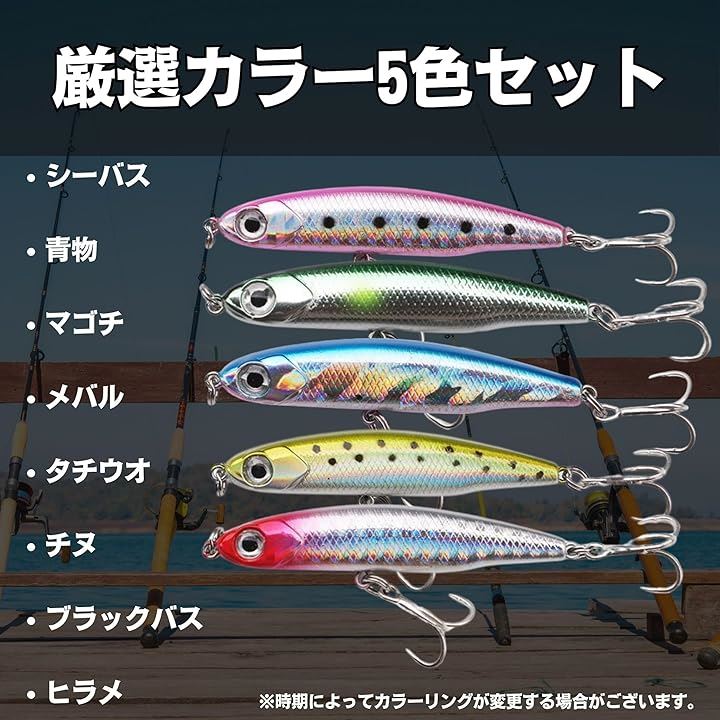 シーバス ルアーセット シンキングペンシル 75mm 13g 5色セット シンペン スモールルアー ヒラメ 青物 遠投 ショット ヒラマサ ヘビー 大物 堤防 ショア オフショア