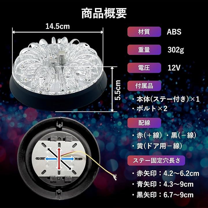 互換品 車 シャンデリア デコトラ 内装 イルミネーション 室内灯 レインボー カスタム 汎用