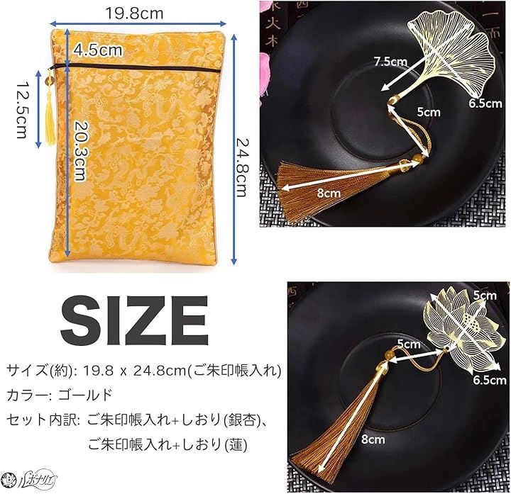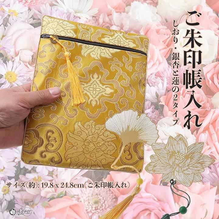 御朱印帳 入れ 袋 ケース 金 ゴールド 朱印帳ケース 栞付き