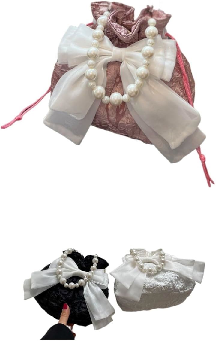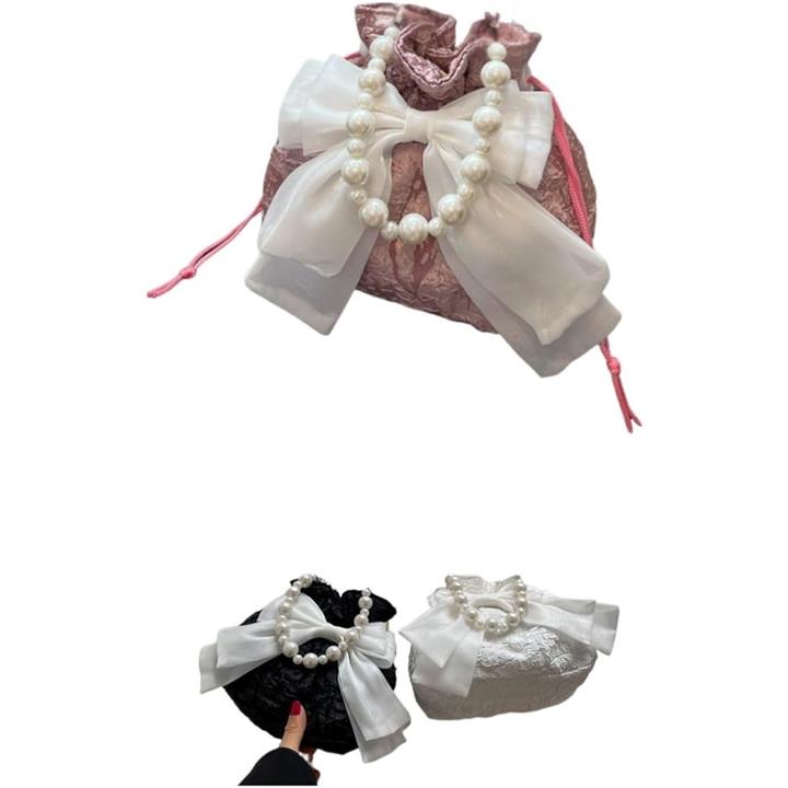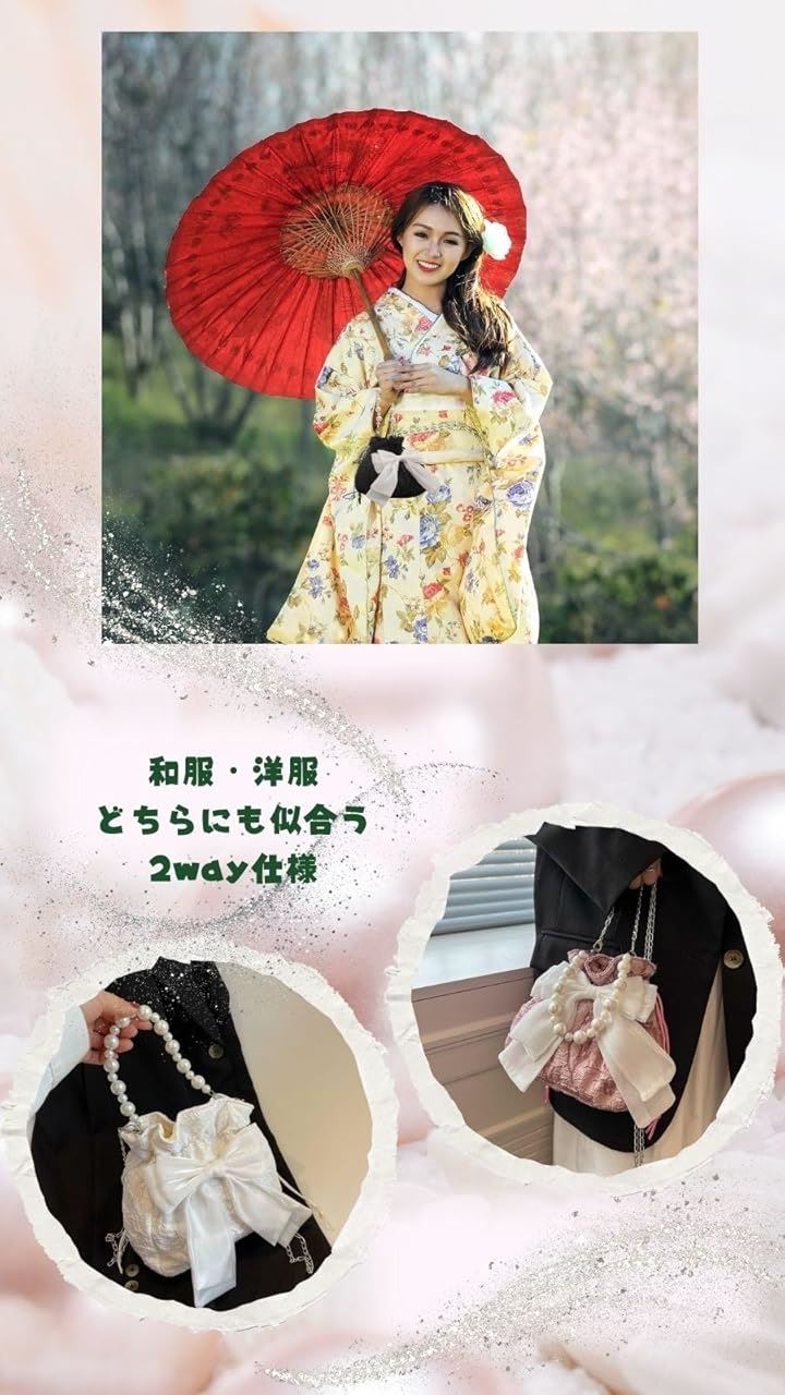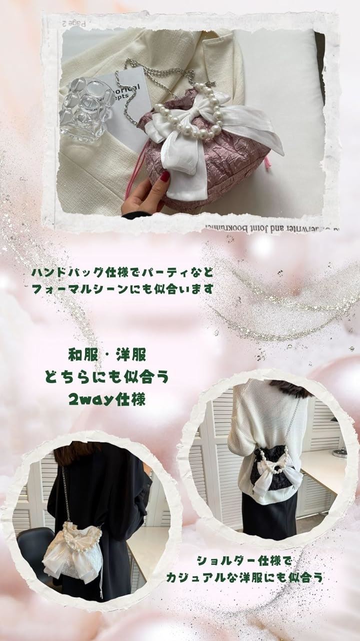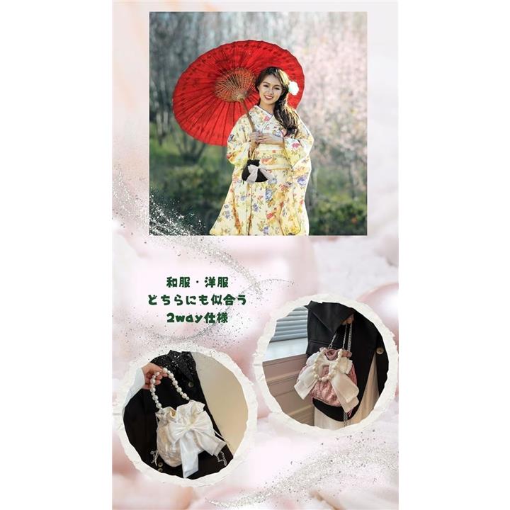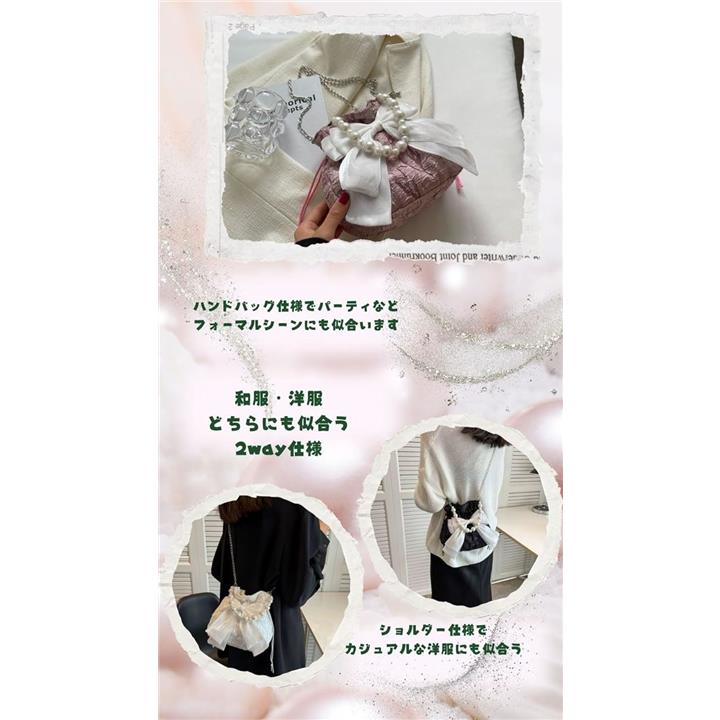浴衣バッグ 巾着 パーティー パール 結婚式 リボンポーチ 小さめ ピンク