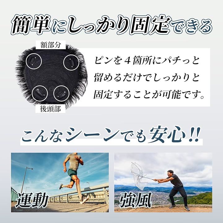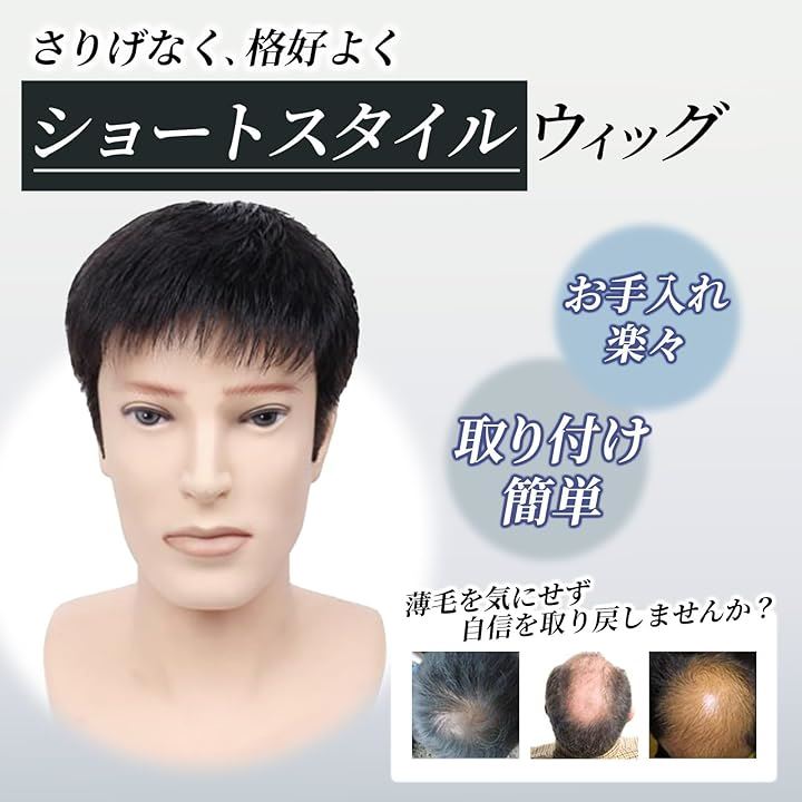 ウィッグ メンズ ハゲ隠し カツラ 男性用 ワンタッチ カバー 自然 ひふ ピン 部分ウィッグ 薄毛 超軽量 黒髪 ショートスタイル