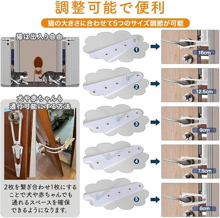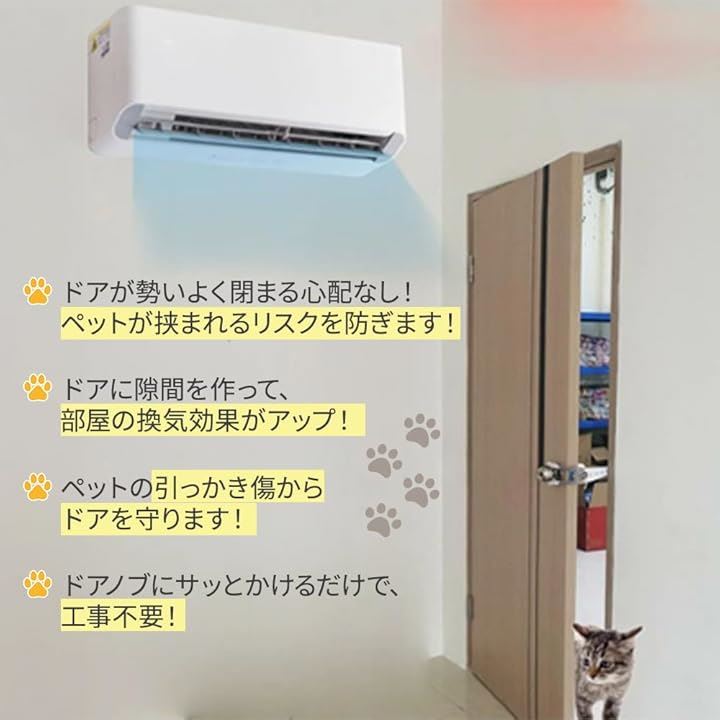 猫 ドア ドアストッパー ペット 室内 とじこめ防止 5段階調整 換気 工事不要 取付簡単