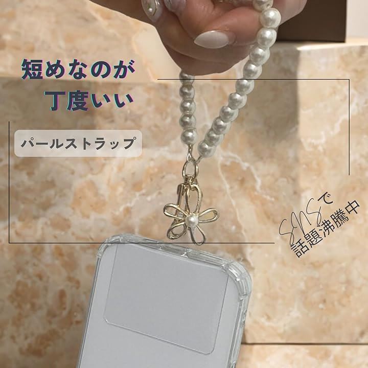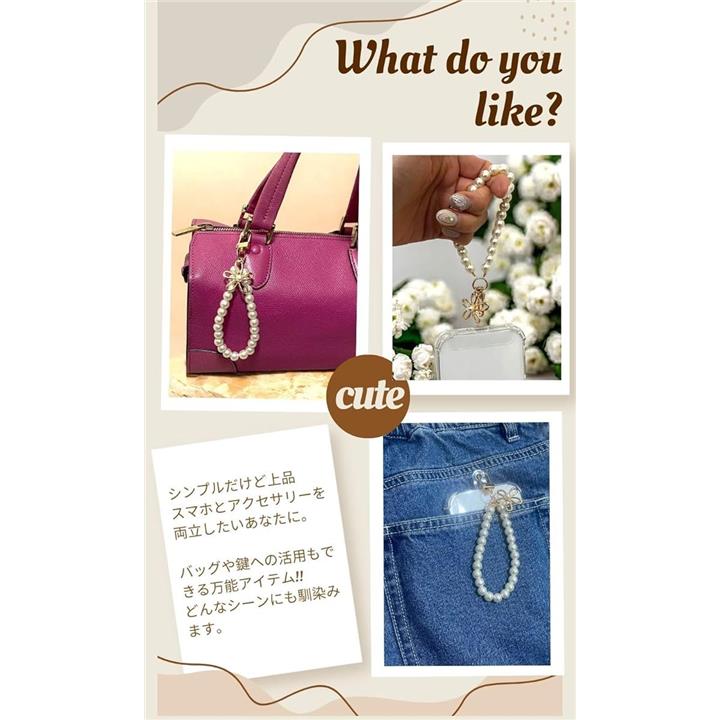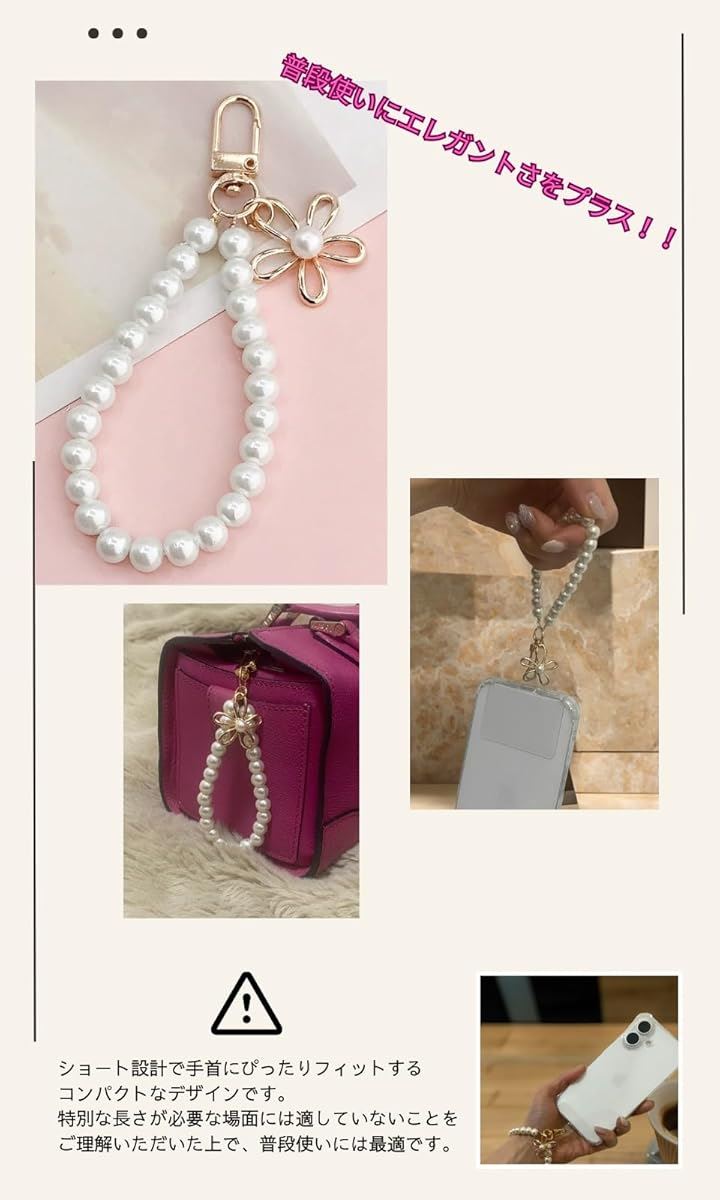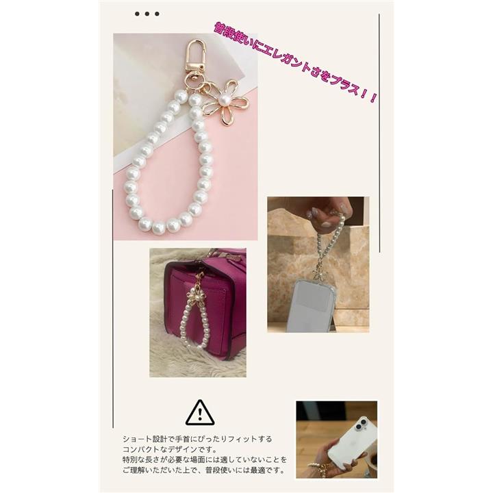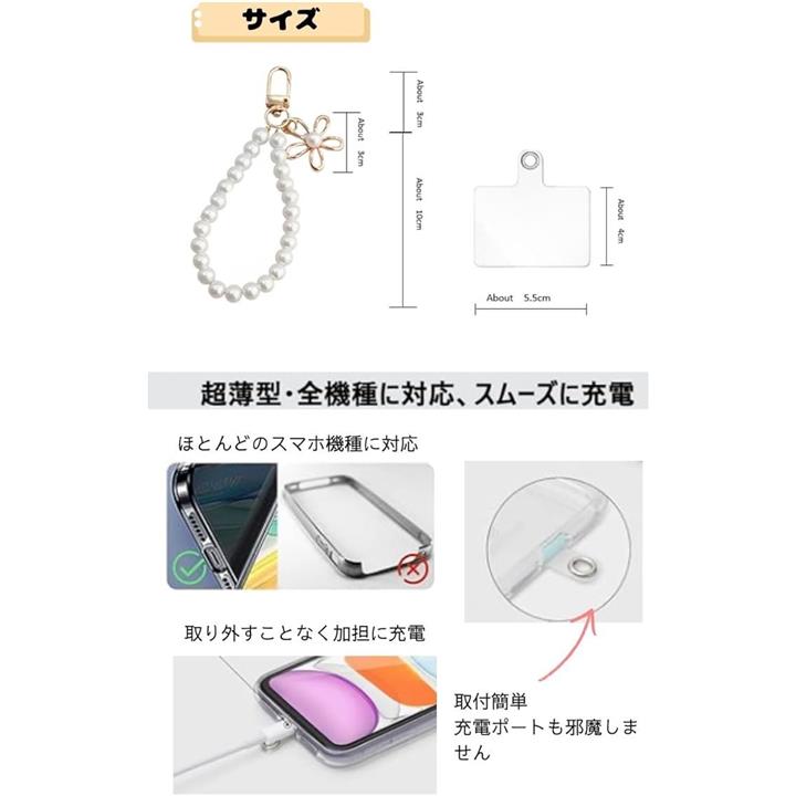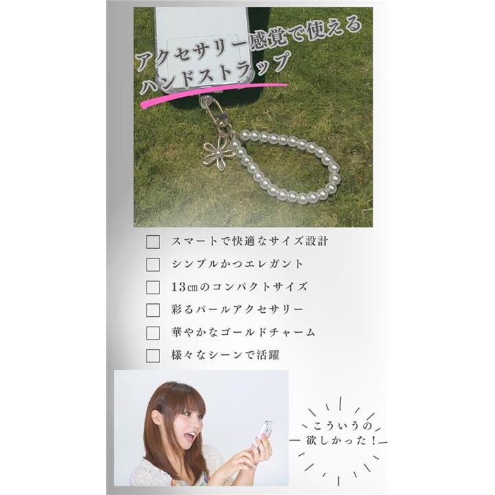 パールチェーン 携帯パールストラップ ラワーチャーム付き ハンドストラップ スマートフォンアクセサリー 落下防止