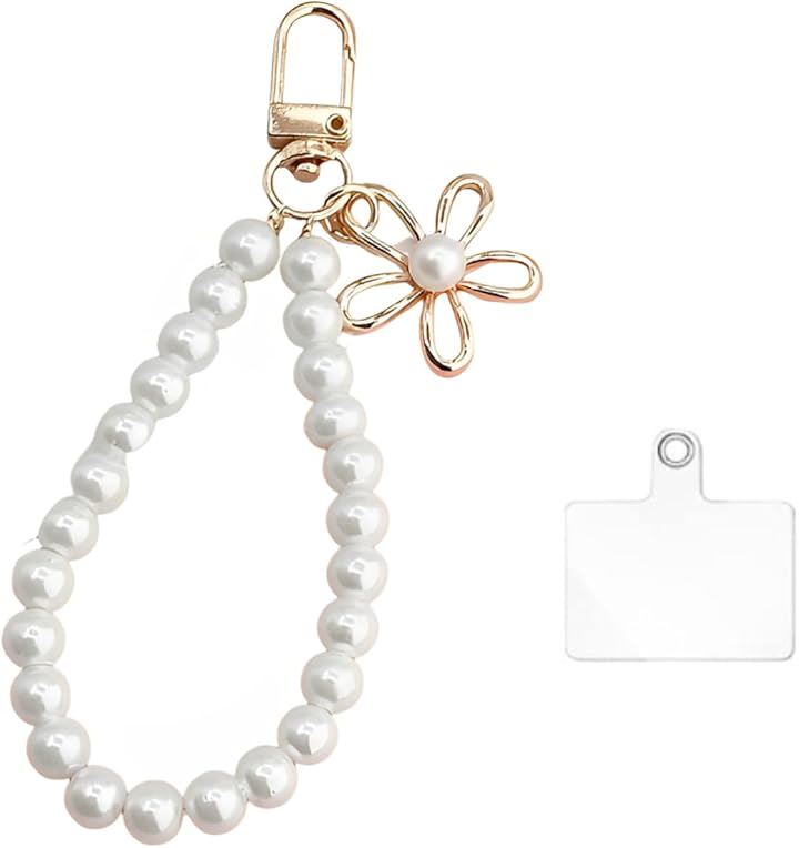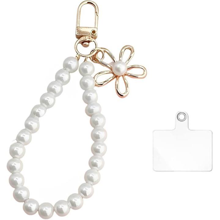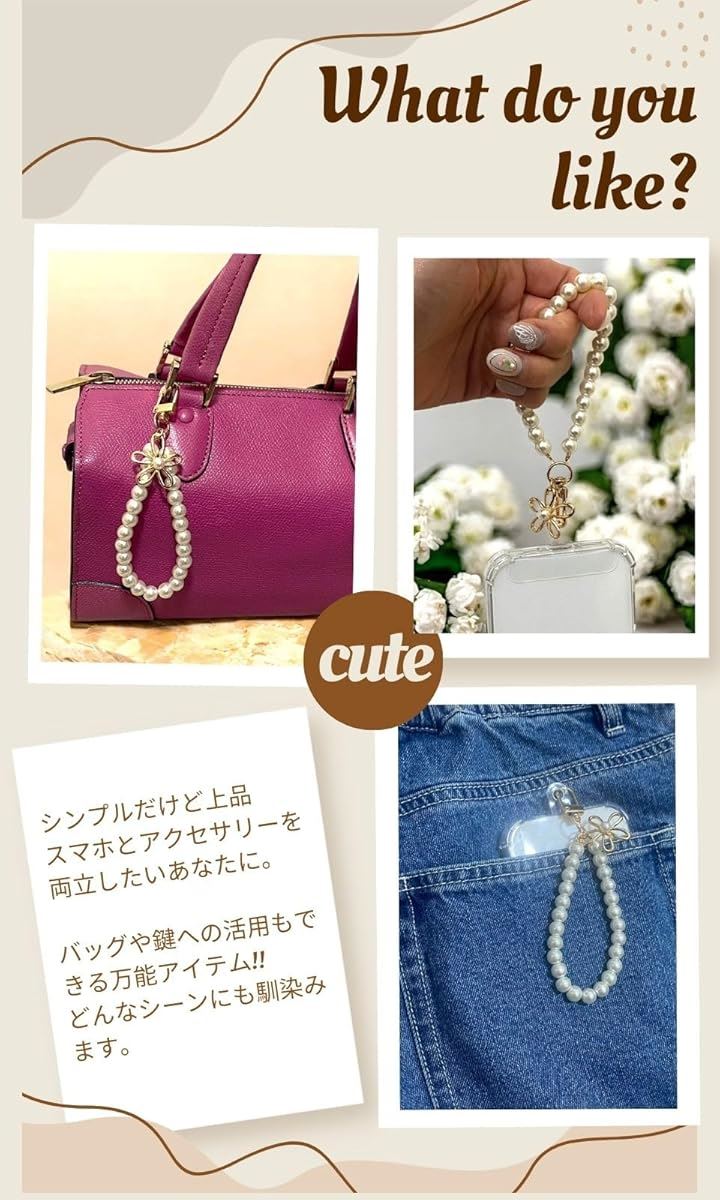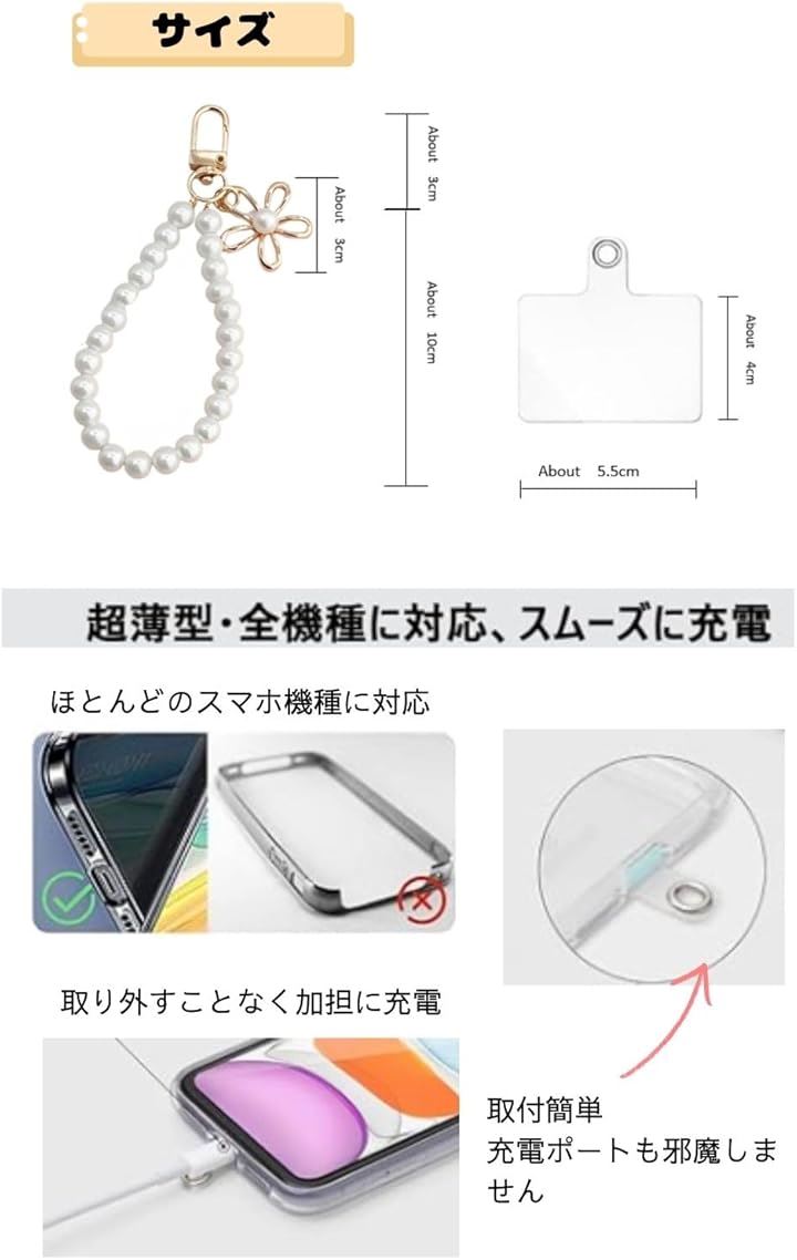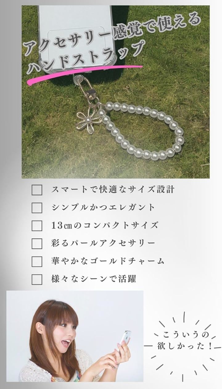 パールチェーン 携帯パールストラップ ラワーチャーム付き ハンドストラップ スマートフォンアクセサリー 落下防止