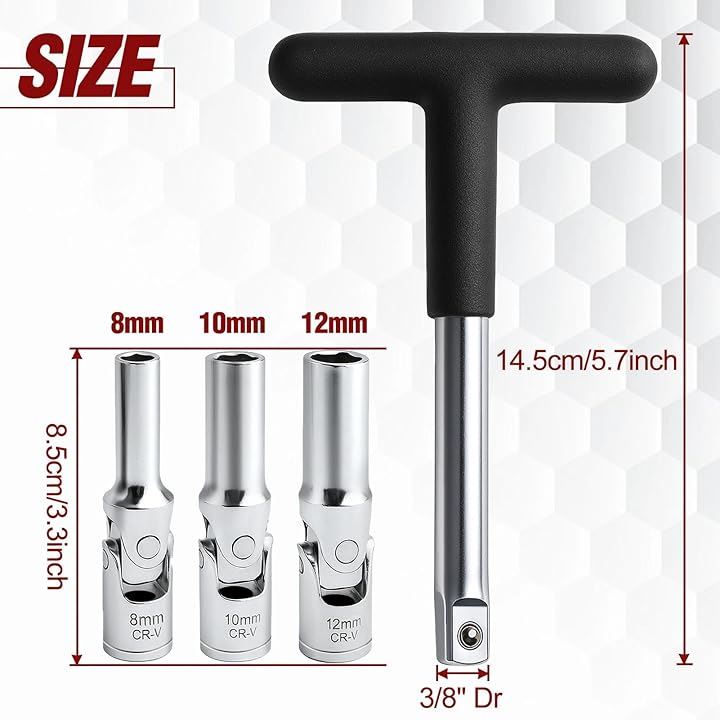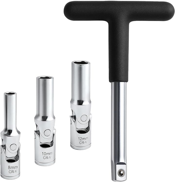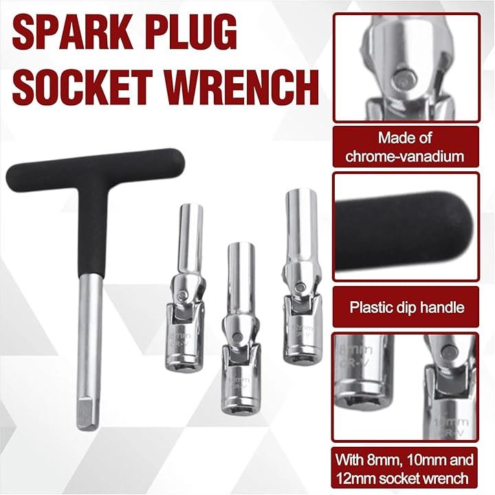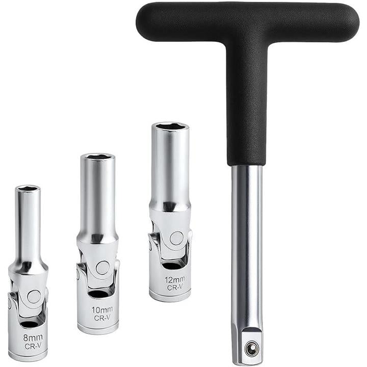 プラグレンチ T型ハンドル スパークプラグレンチ ユニバーサルジョイント スパークプラグソケット セット差込角 8mm 10mm 12mm フレキシ 6コーナー ソケットレンチ