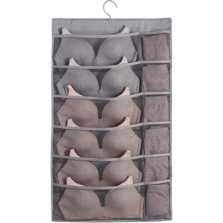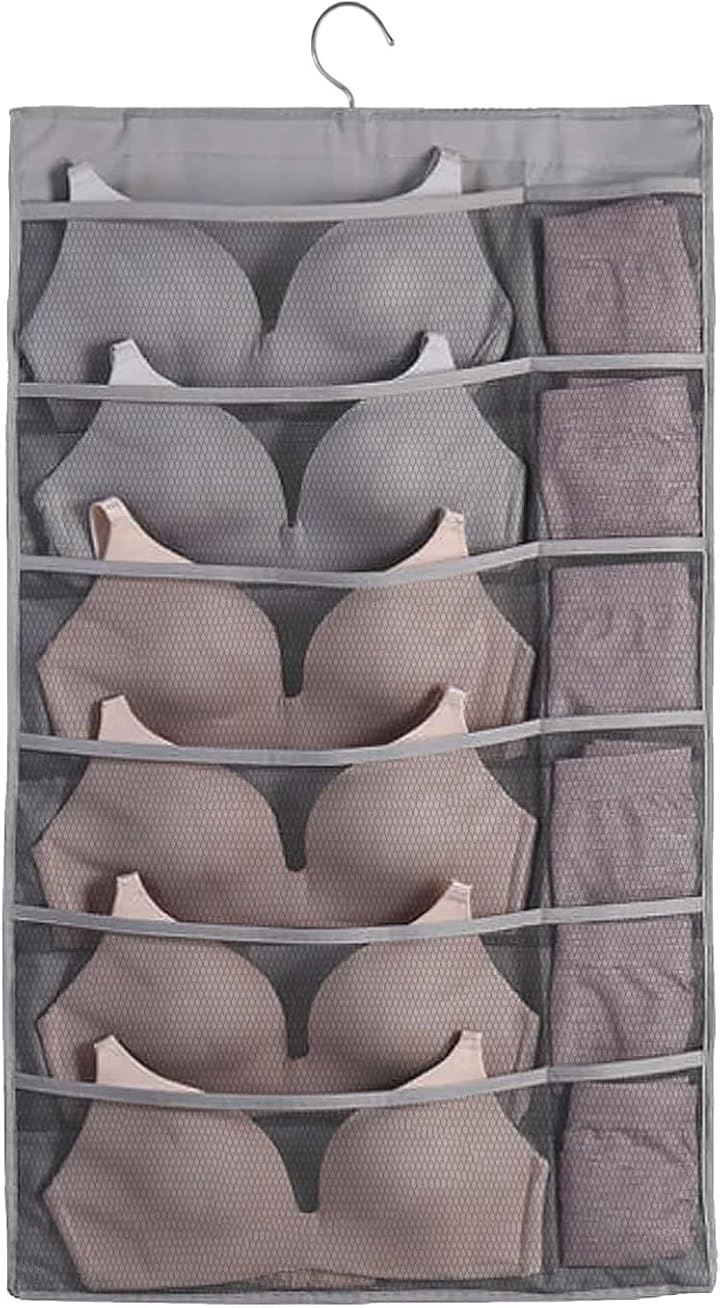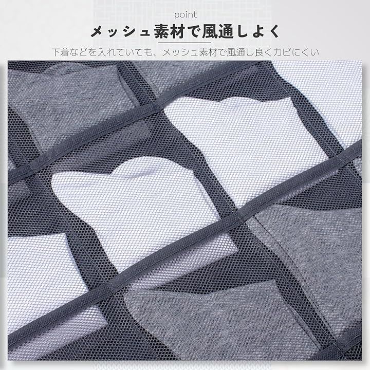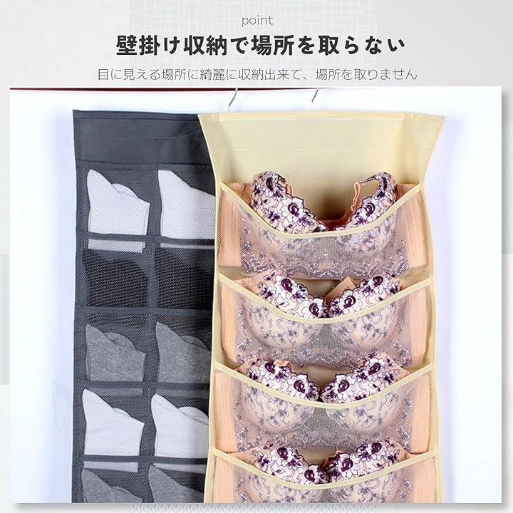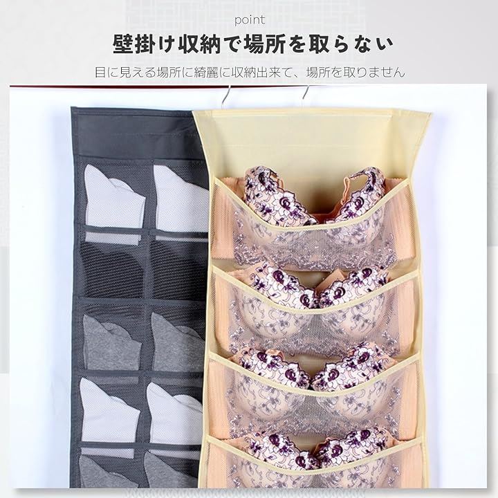 下着 収納 ウォールポケット 壁掛け 両面収納 ブラジャー 吊り下げ収納 小物収納 大容量 折り畳み 靴下ハンガー フック付き 30ポケット