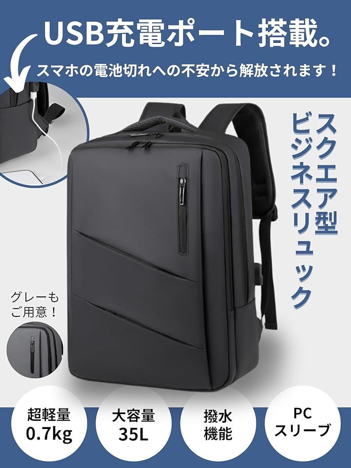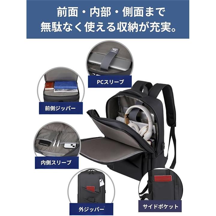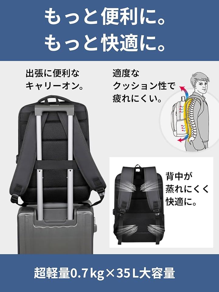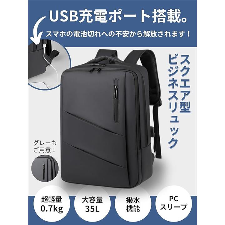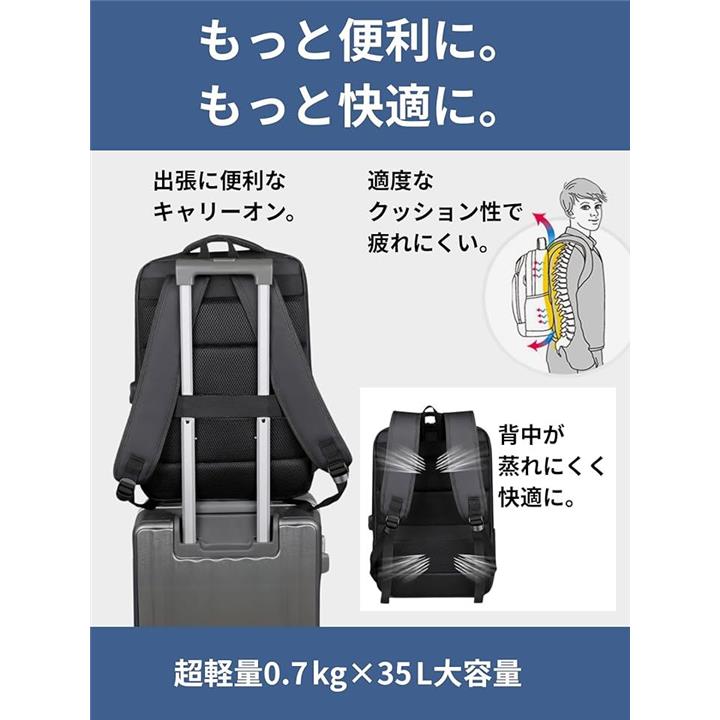 ビジネスバッグ メンズ リュック ビジネスリュック 大容量35L 防水 USB充電ポート 16インチPC対応 軽量 通気 キャリーオン 出張 通勤 旅行 バックパック