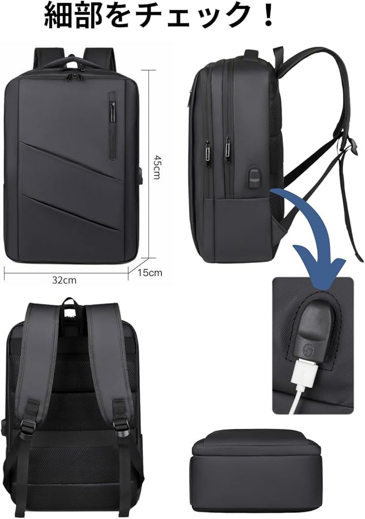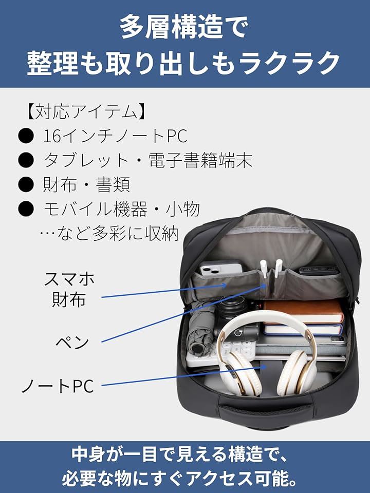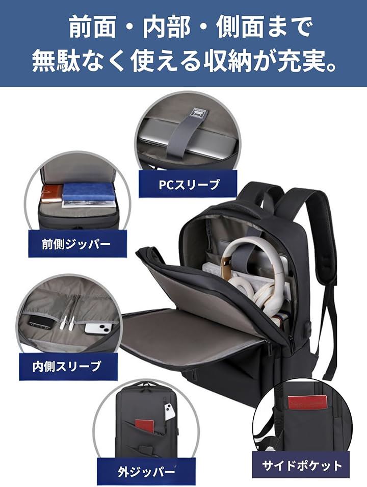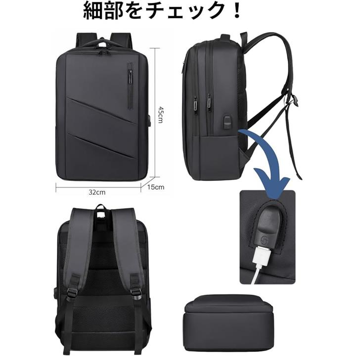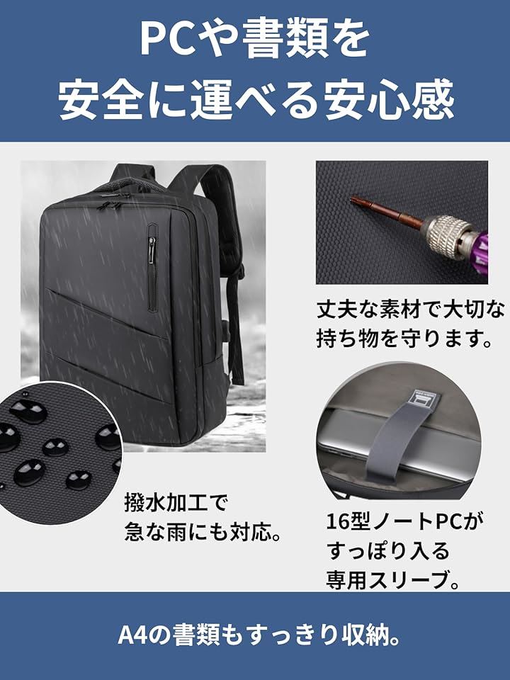 ビジネスバッグ メンズ リュック ビジネスリュック 大容量35L 防水 USB充電ポート 16インチPC対応 軽量 通気 キャリーオン 出張 通勤 旅行 バックパック