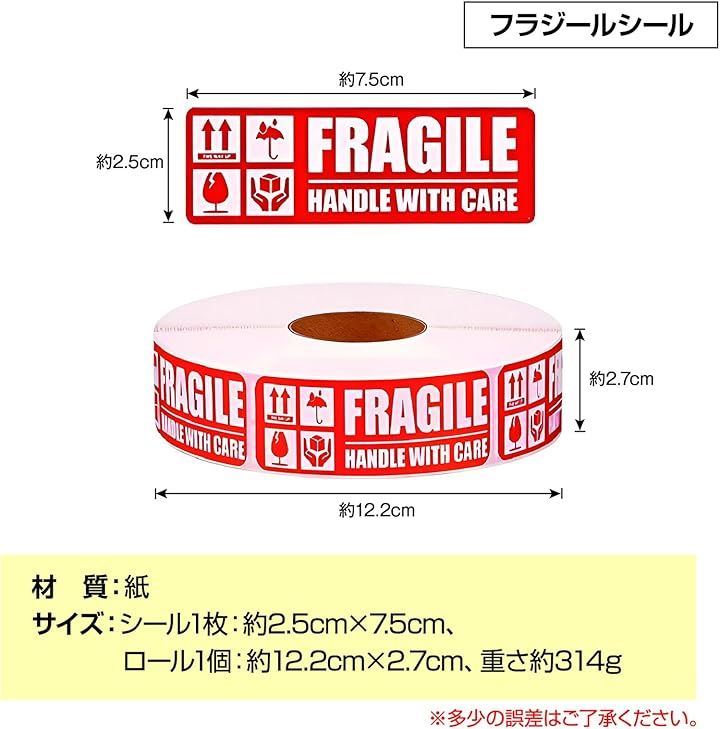 フラジール ステッカー 割れ物 取扱注意 ラベル シール 壊れ物 輸送 荷札シール