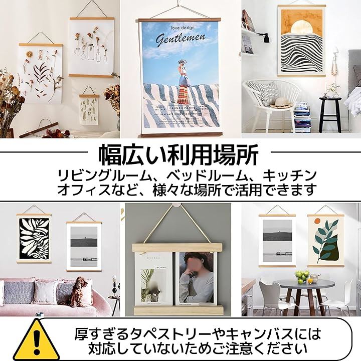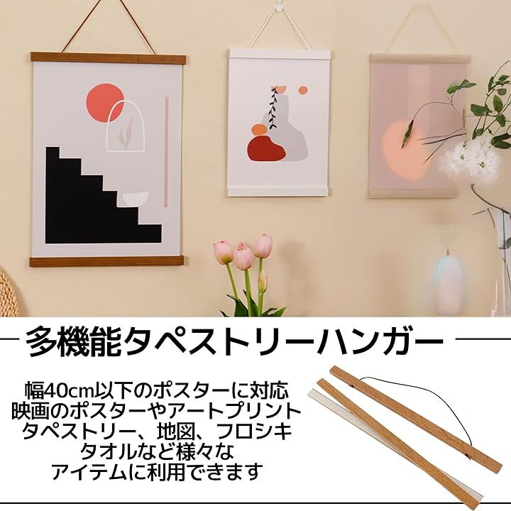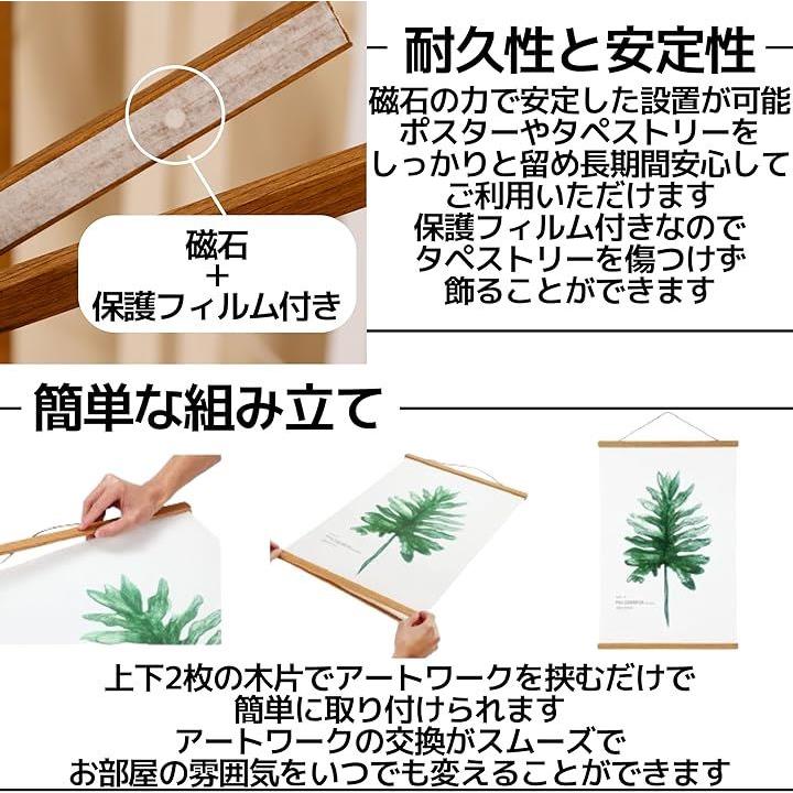タペストリー棒 ポスターハンガー マグネット 壁掛け 和風 穴を開けない 額縁 木製 2点セット