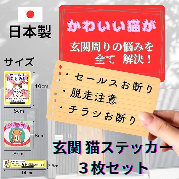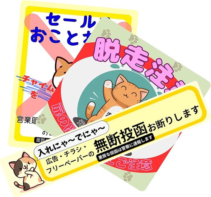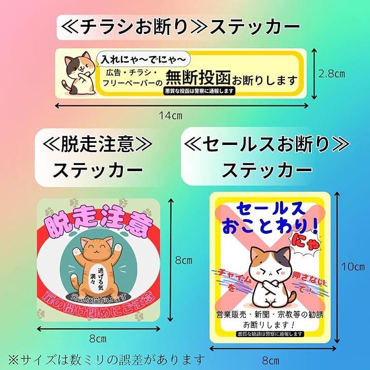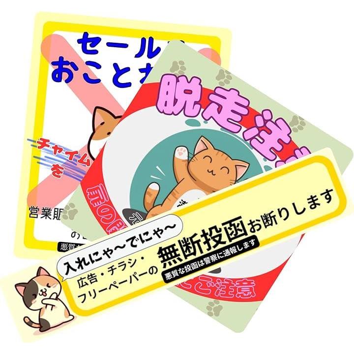 チラシお断り セールスお断り 脱走防止 猫 ステッカー シール 迷惑チラシ 無断投函禁止 郵便ポスト 玄関 玄関ドア 耐候型 耐光 防水 日本製 チャペ21