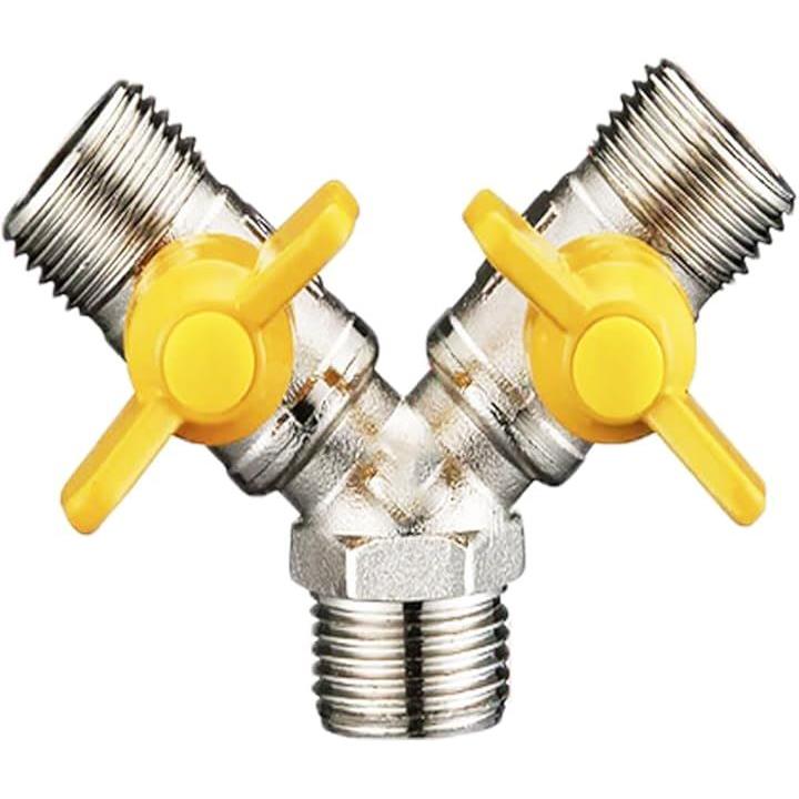 分岐蛇口 3口止水栓 1/2インチ 散水・食洗機用コネクター 真鍮製 キッチン・屋外用