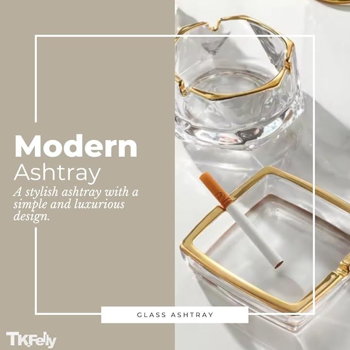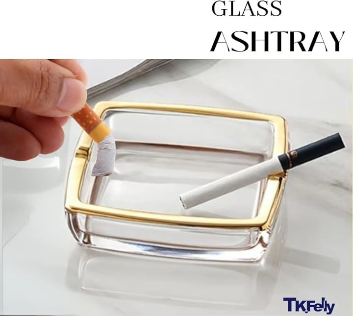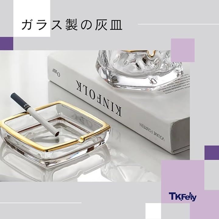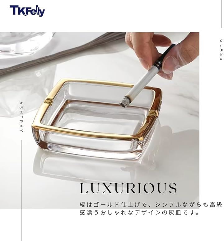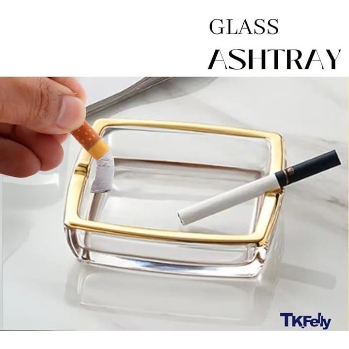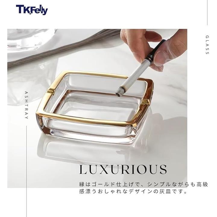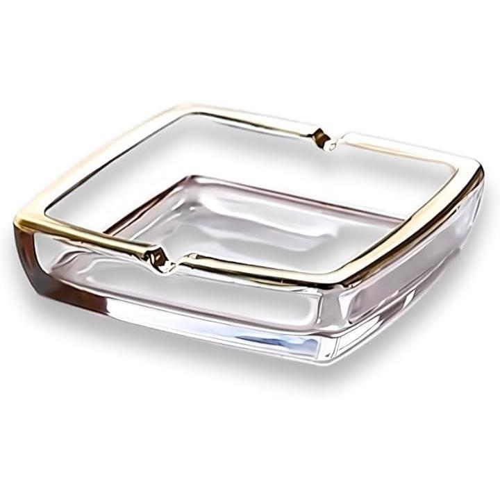 ガラス灰皿 ゴールド おしゃれ 洗いやすい 正方形 透明 高級 インテリア