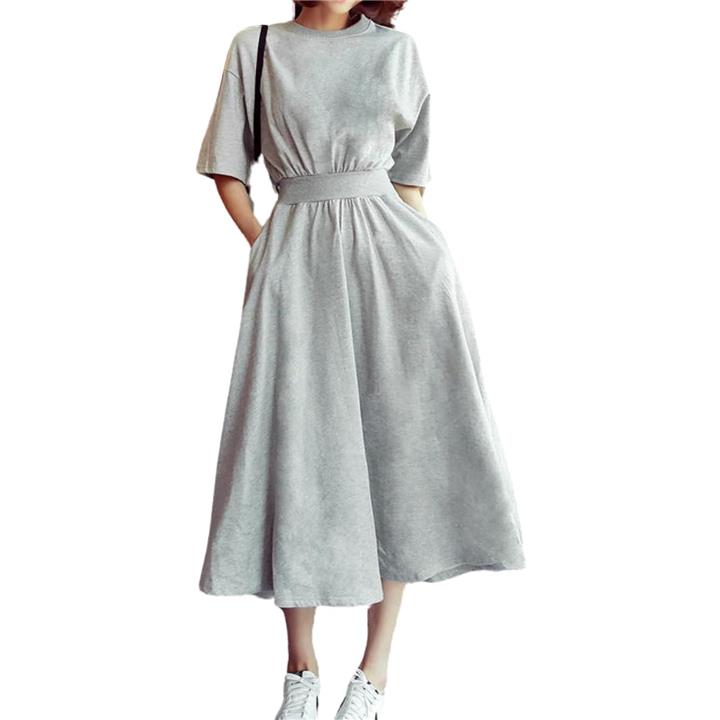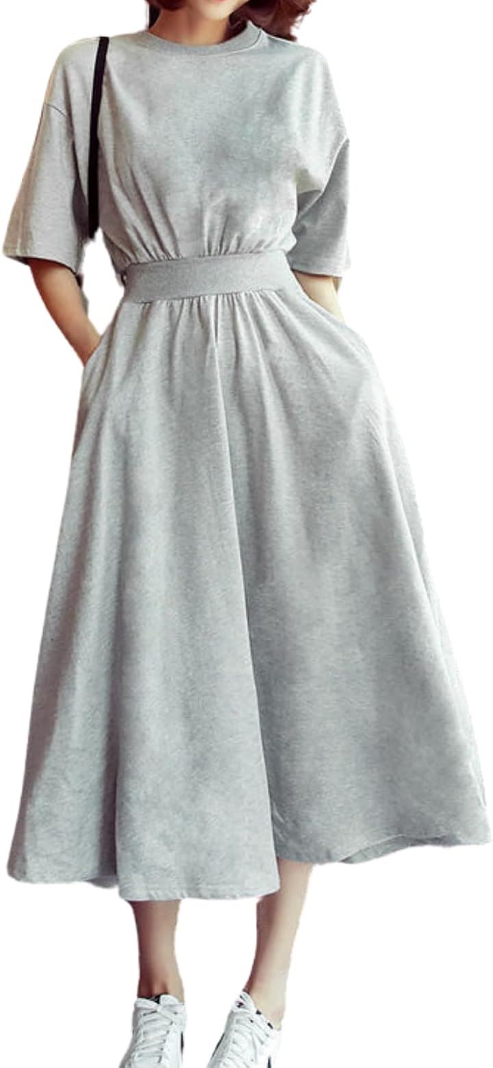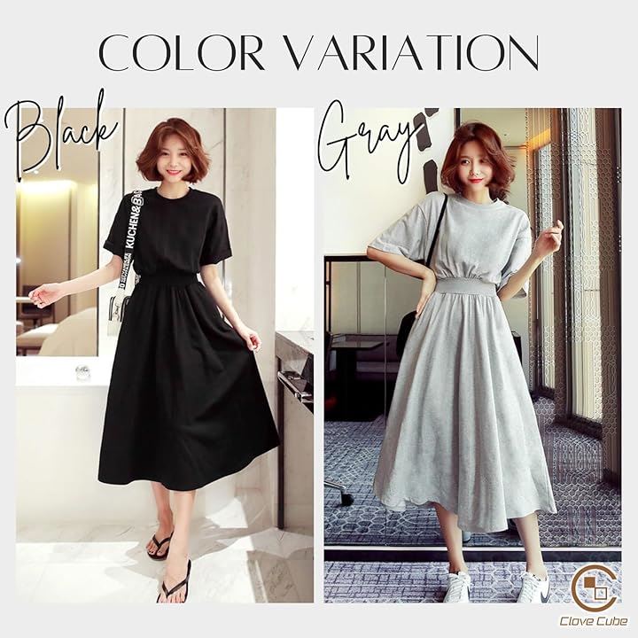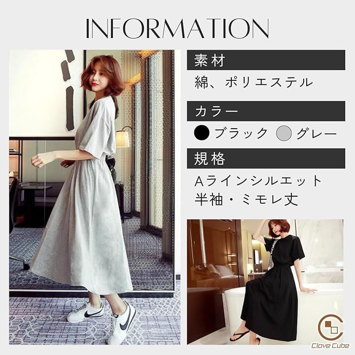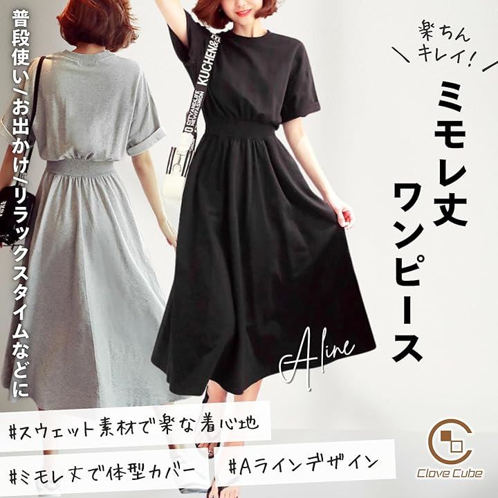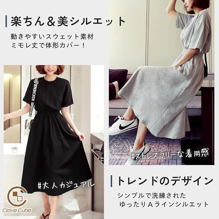 [Clove Cube] 「クローブキューブ」レディース ワンピース ミモレ丈 半袖 ひざ丈 スウェット カジュアル 大人 きれいめ |