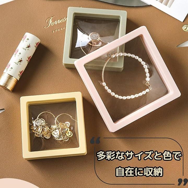 「多用途なディスプレイ」このルースケースセットは、ジュエリーやアクセサリーを美しくディスプレイするだけでなく、写真やバッジ、標本など多様なアイテムを収納できます。