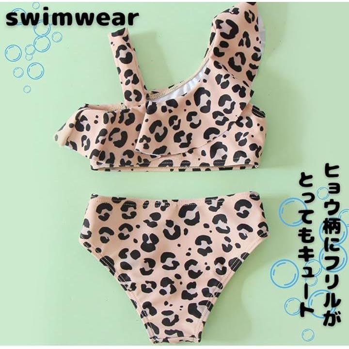 水着 ベビー キッズ 女の子 ビキニ セパレート ヘソ出し 子供 セットアップ 上下 ヒョウ柄 豹 スイムウエア