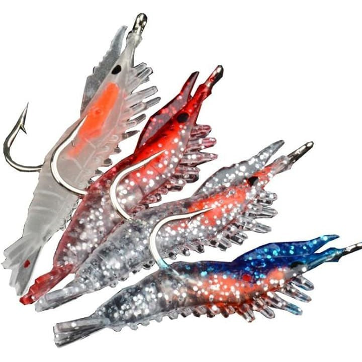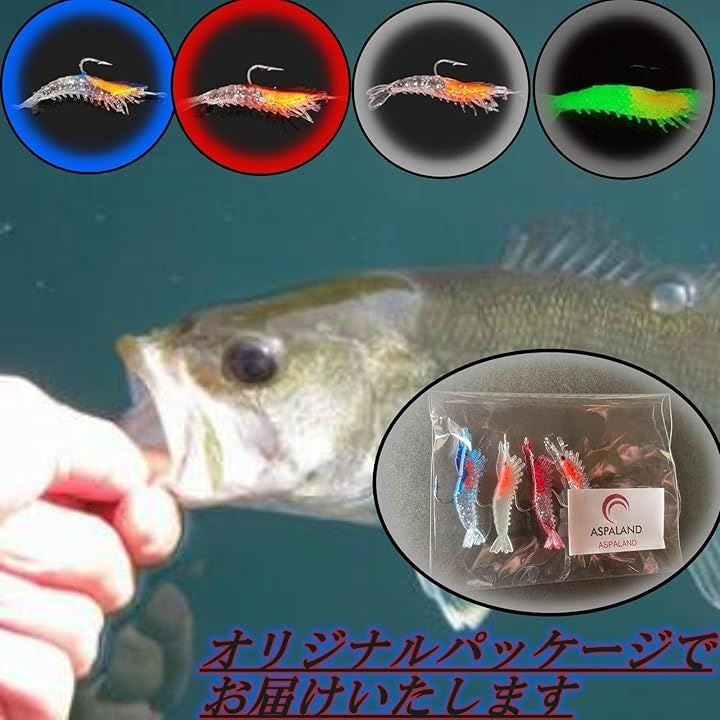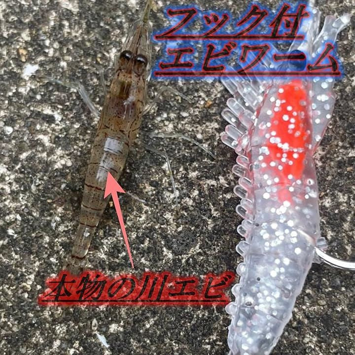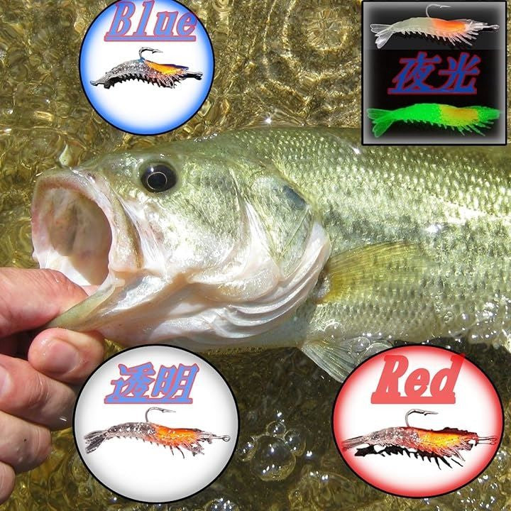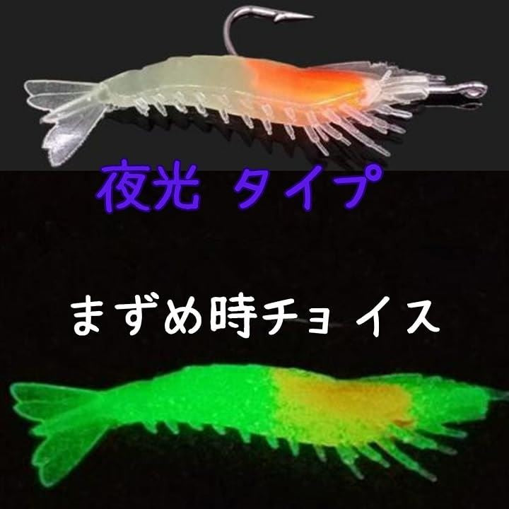 互換品 エビ ワーム ルアー フック付き 4カラー 蛍光 含 本物の 海老 そっくり 疑似 餌 バス シーバス