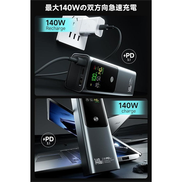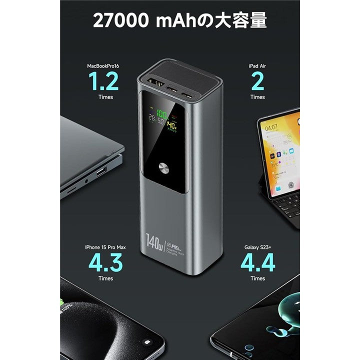 「互換品」モバイルバッテリー 「27000mAh大容量・140W急速充電」 モバイルバッテリー 軽量 小型 PD対応 PSE認証済 3ポート(2USB-C+1USB-A) 3台同時充電 LCDディスプレイ搭載 スマホ充電器 携帯充電器 軽量 iPhone/Android各種スマホ対応 |