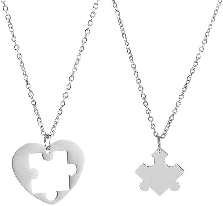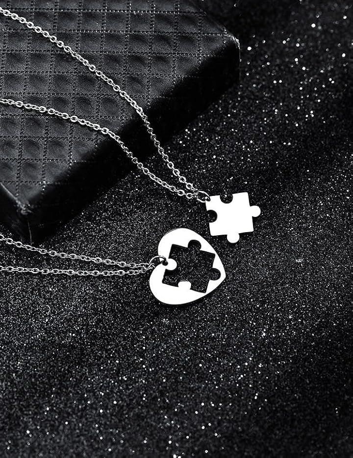 ネックレス お揃い 2つ入り パズルピーズ ハート ペアアクセサリー ステンレス シンプル カップル プレゼント