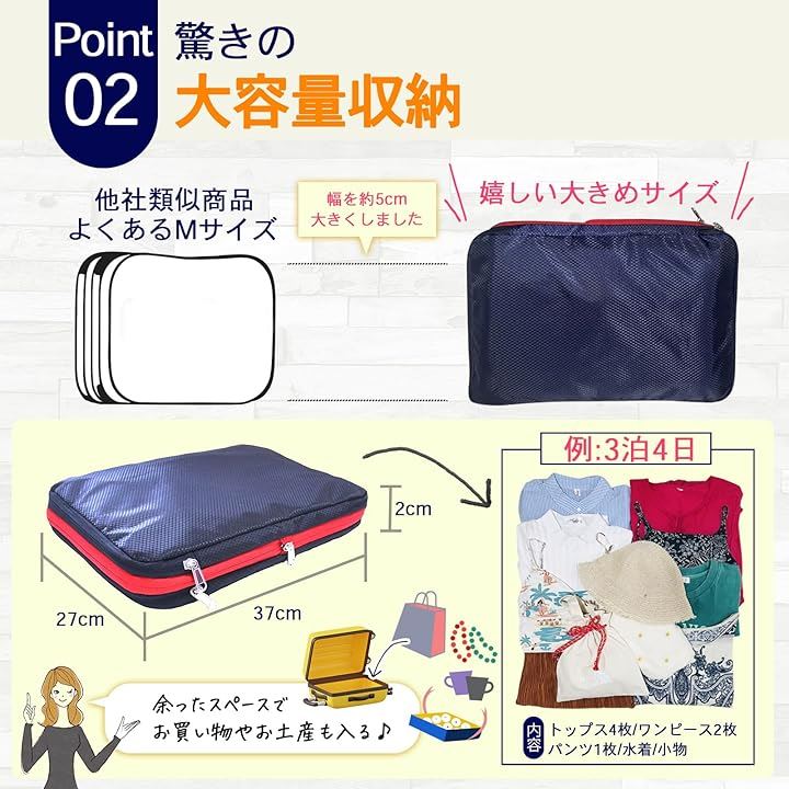 2025年夏モデル NEWカラー 圧縮トラベルポーチ スッキリ簡単3step 圧縮で衣類スペース最大50%節約 大きめサイズ 3泊 日本メーカー 旅行用圧縮袋