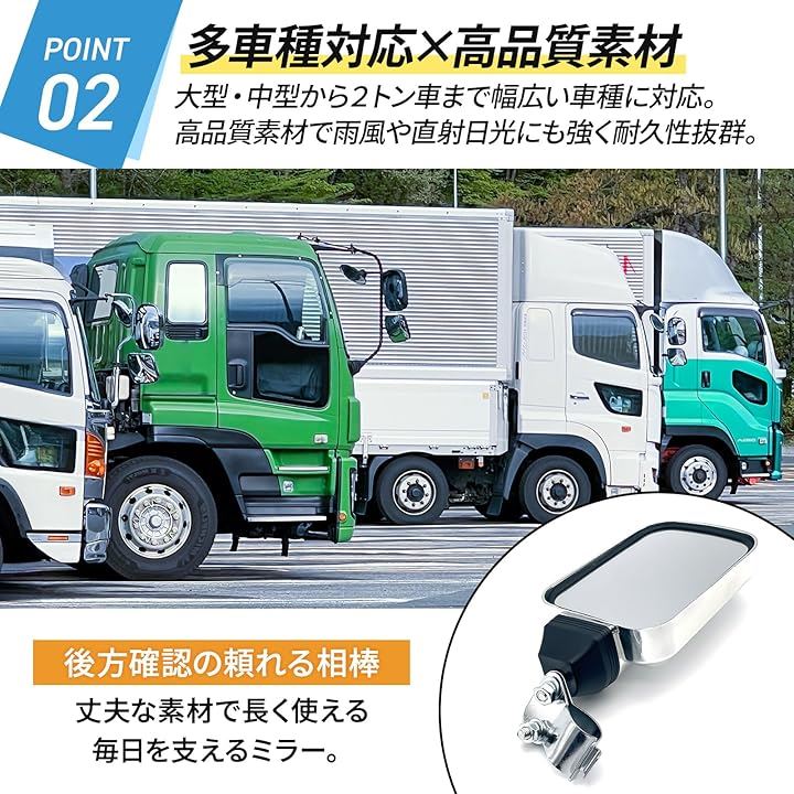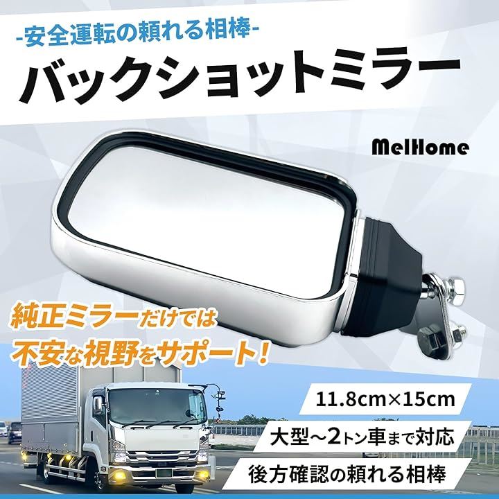 トラック バックショットミラー 角形 メッキ 大型 中型 2トン サイドミラー 補助ミラー ミラー左右 平面鏡 死角軽減 駐車 車線変更 後方確認 日差し 部品パーツ