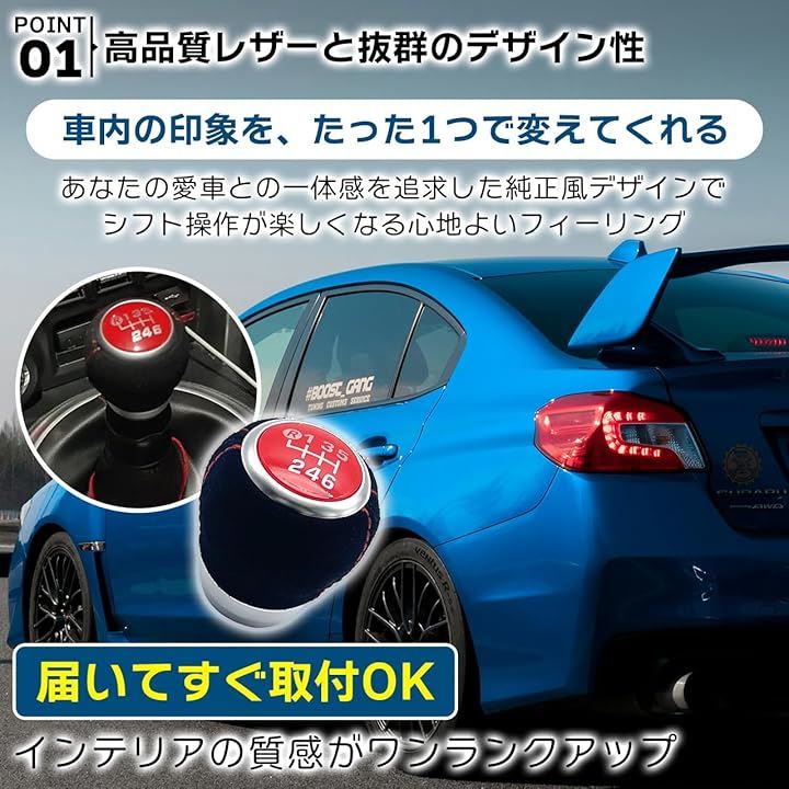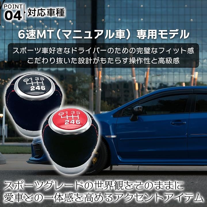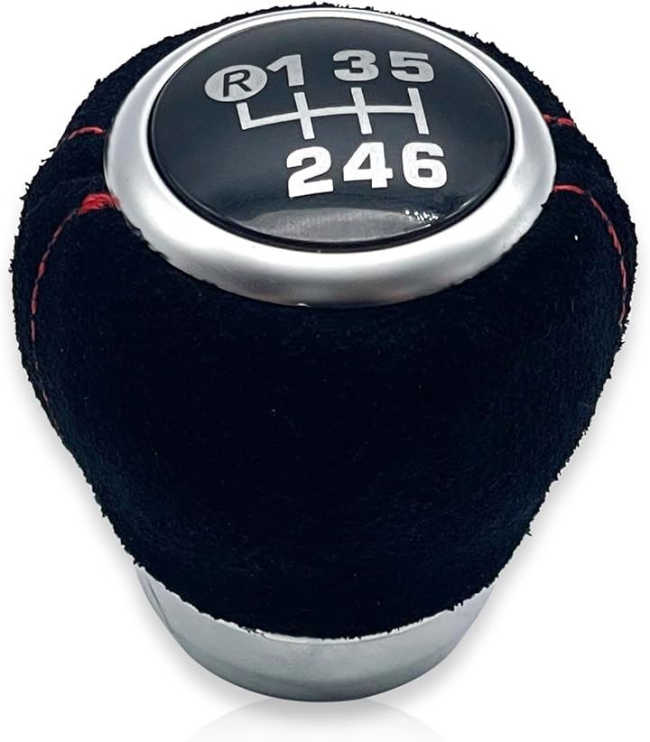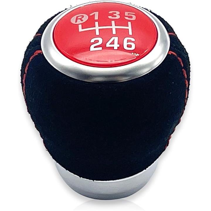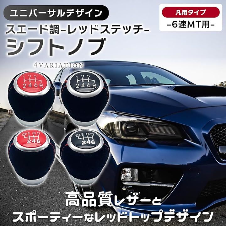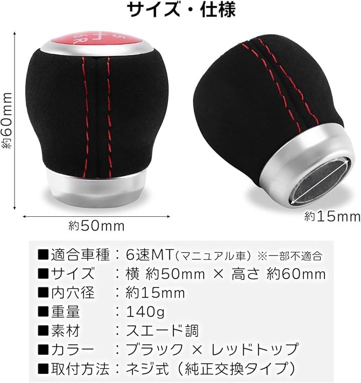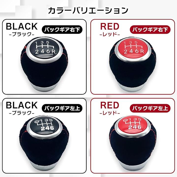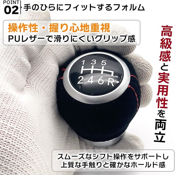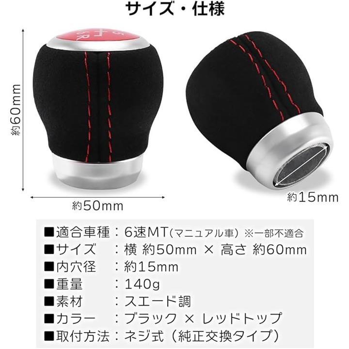 シフトノブ カバー 汎用 6速マニュアル車用 スエード調 レッドステッチ 右下 左上バックギア対応 滑り止め付き カスタム内装パーツ MT車対応