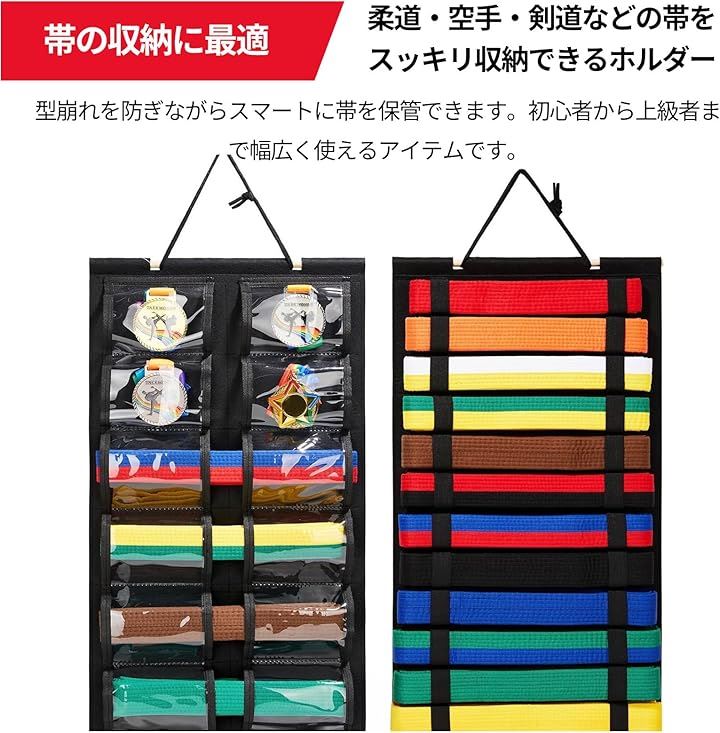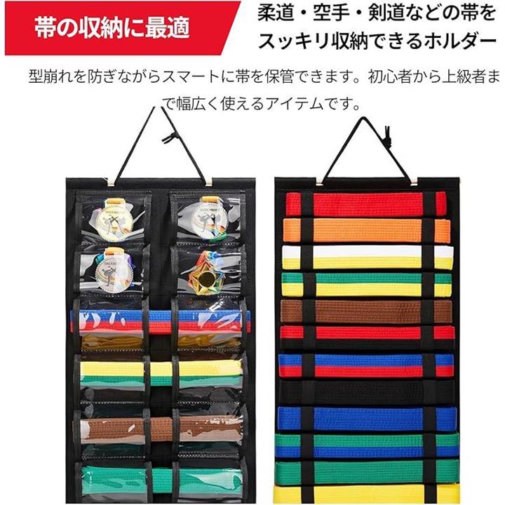 帯ホルダー 柔道 空手 剣道 ゴム式 収納式 吊り下げ 保管 ケース