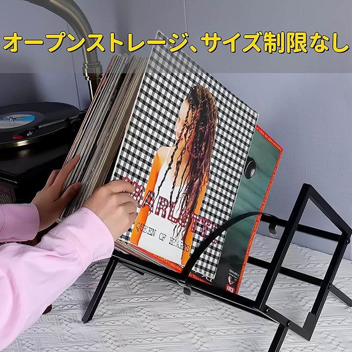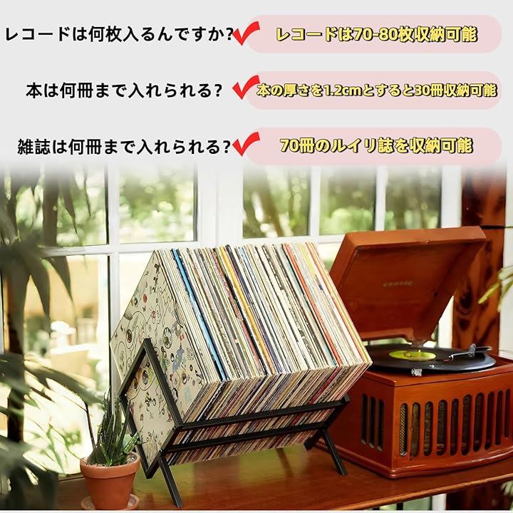 約70-80枚収納レコードラック 金属製 レコードスタンド簡単に組み立て マガジンラック おしゃれ 安定性 レコードケース 床置き絵本棚 スチールラック 本立て