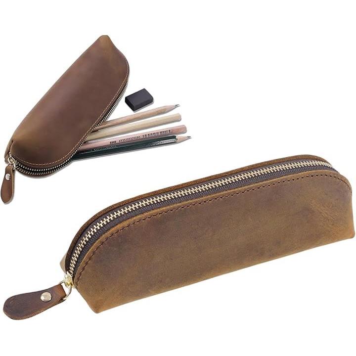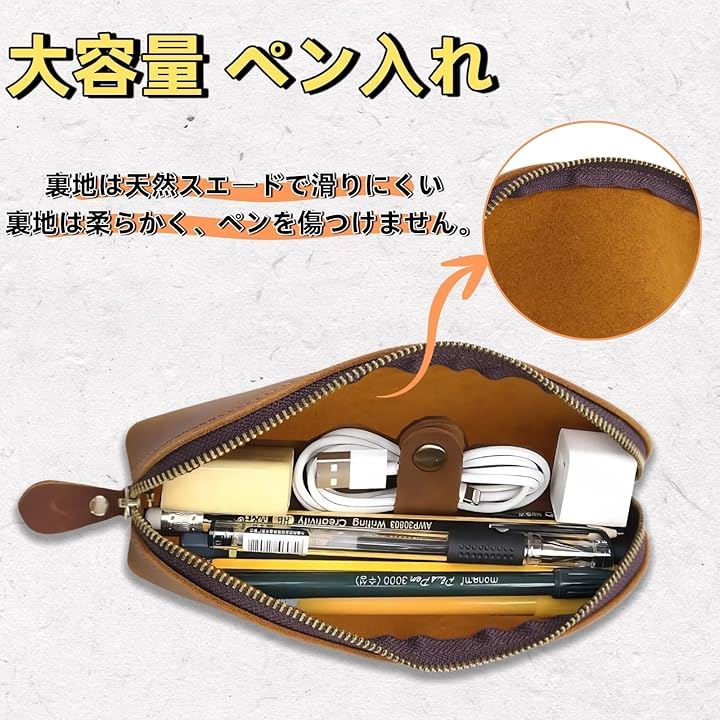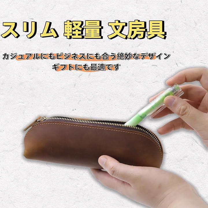 本革 超薄軽量ペンケース 筆箱 文房具 ペン入れ レザーペンケース スリム 革筆箱 自立 ファスナー付き 16本収納 大人 ビジネス おしゃれ シンプル 高校生 社会人 レディース メンズ プレゼント 入学祝い