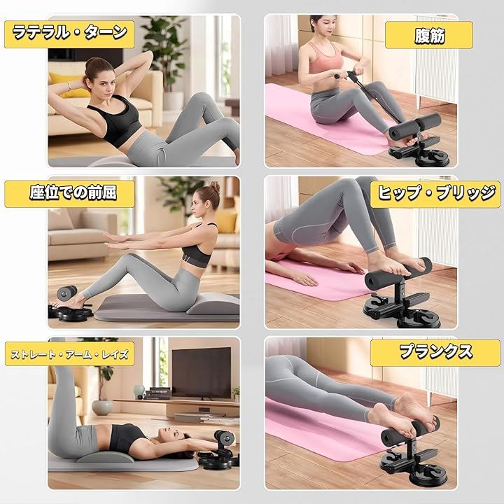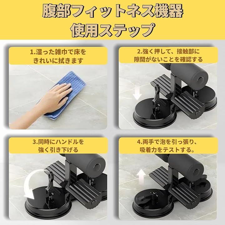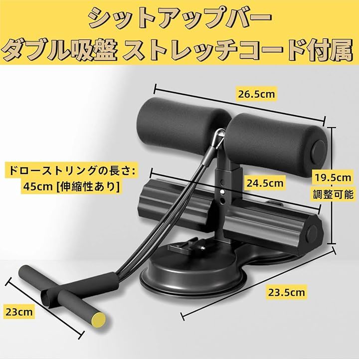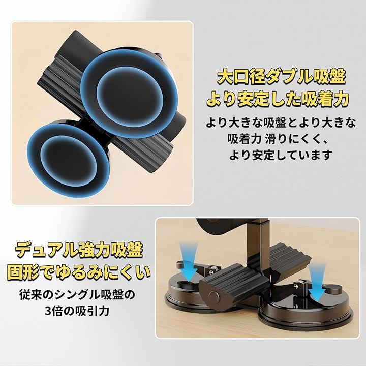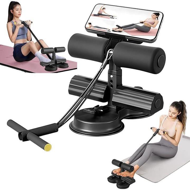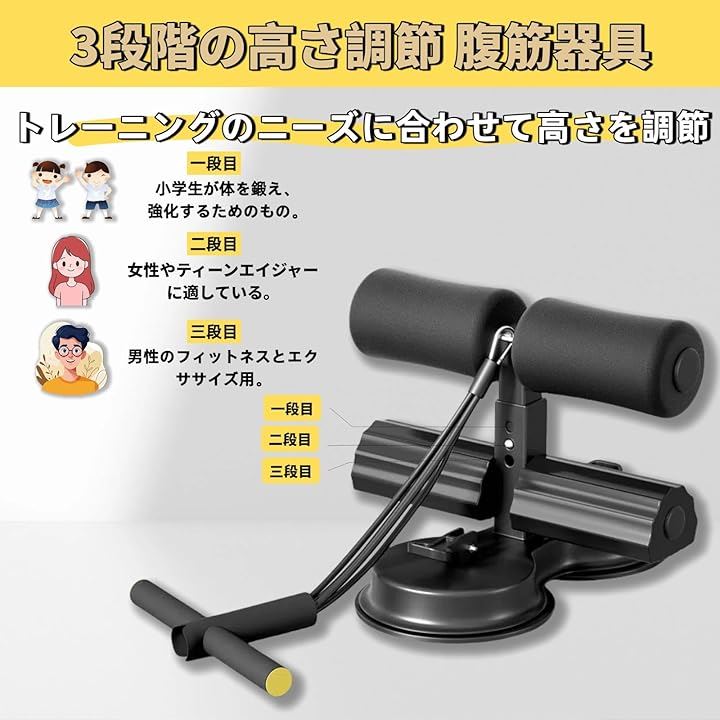 スマホ見ながらトレーニング可吸盤式 足固定 腹筋マシーン ポータブル ダブル吸盤で強力密着 3段階高さ調整 腹筋補助器具 ストレッチコード付属