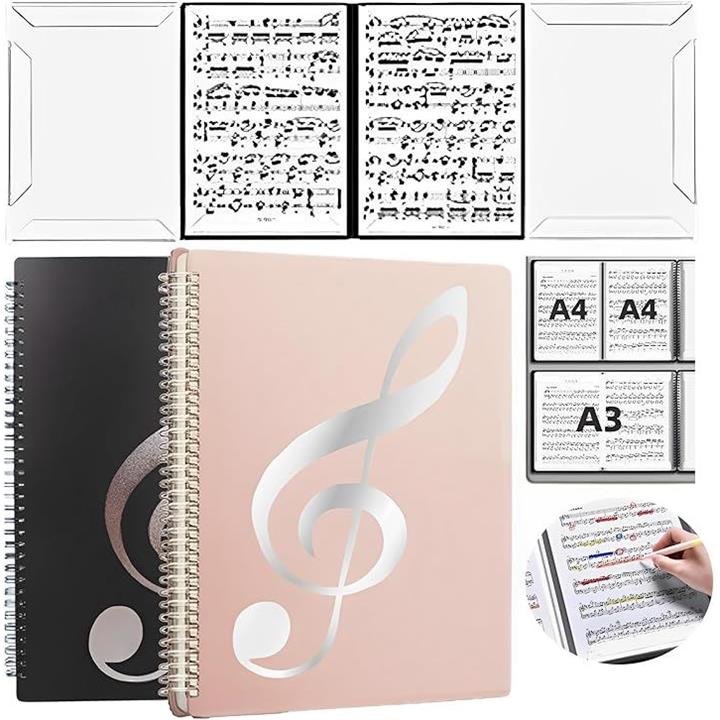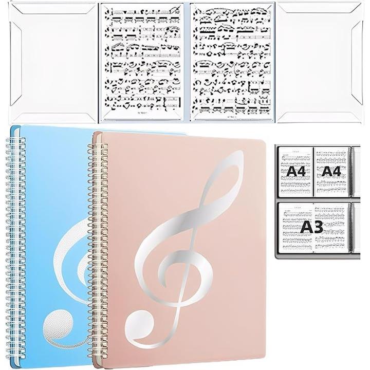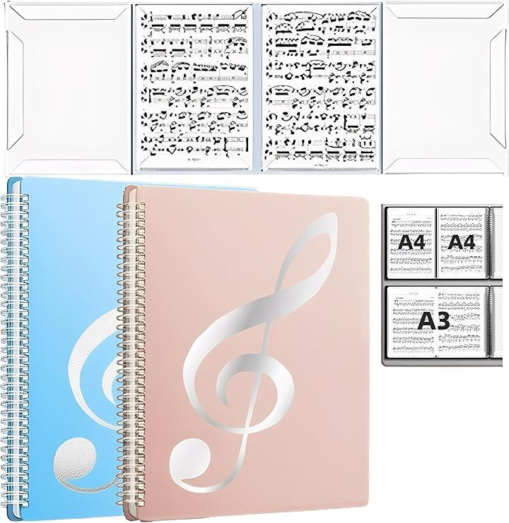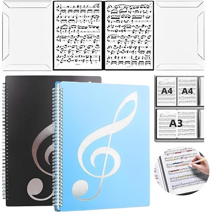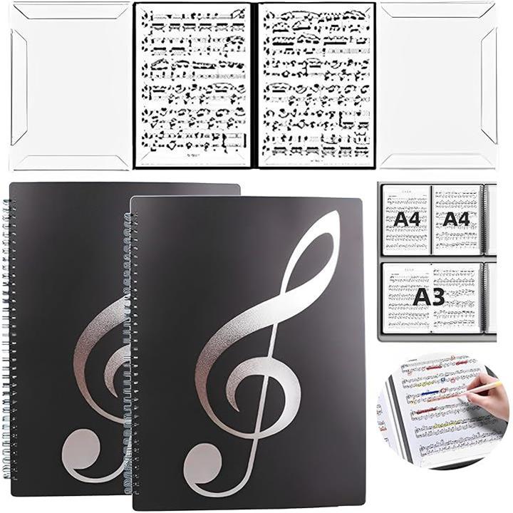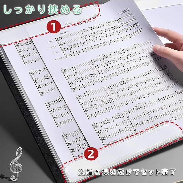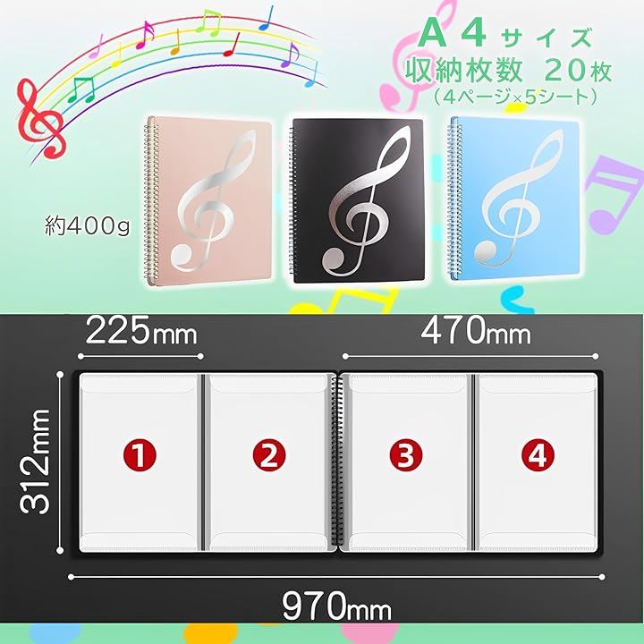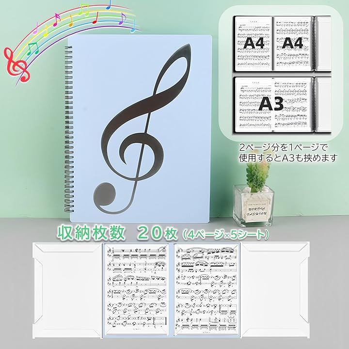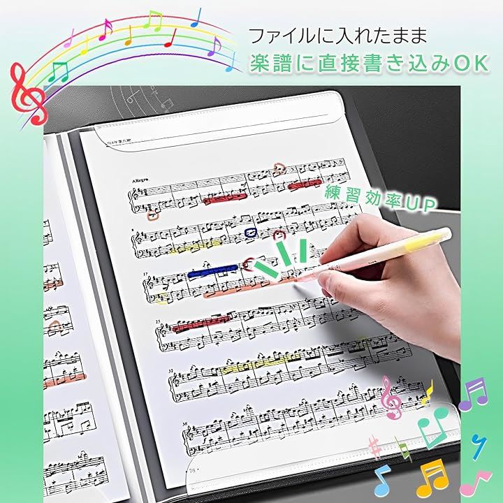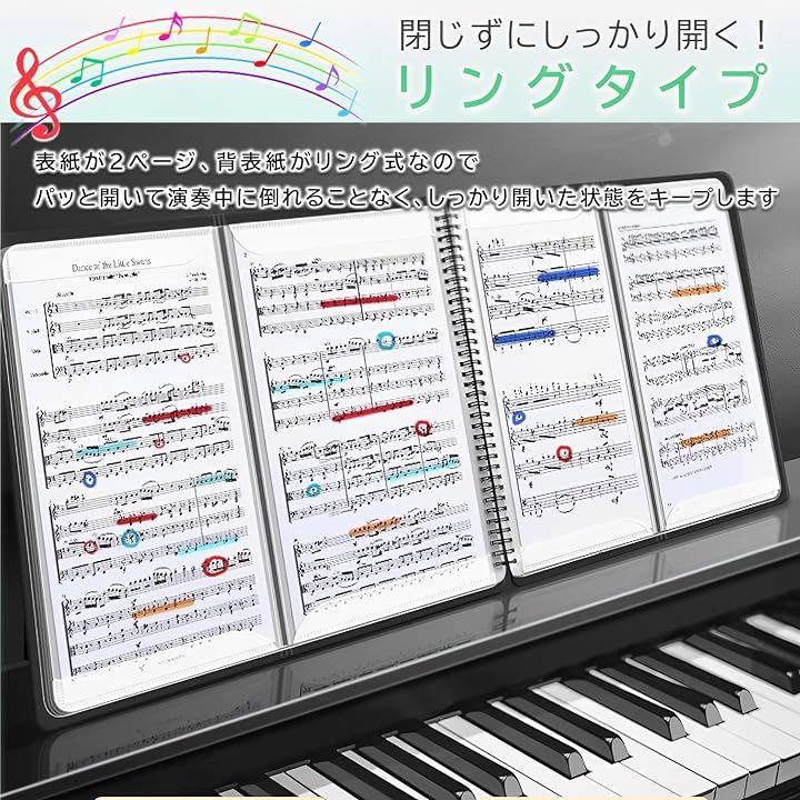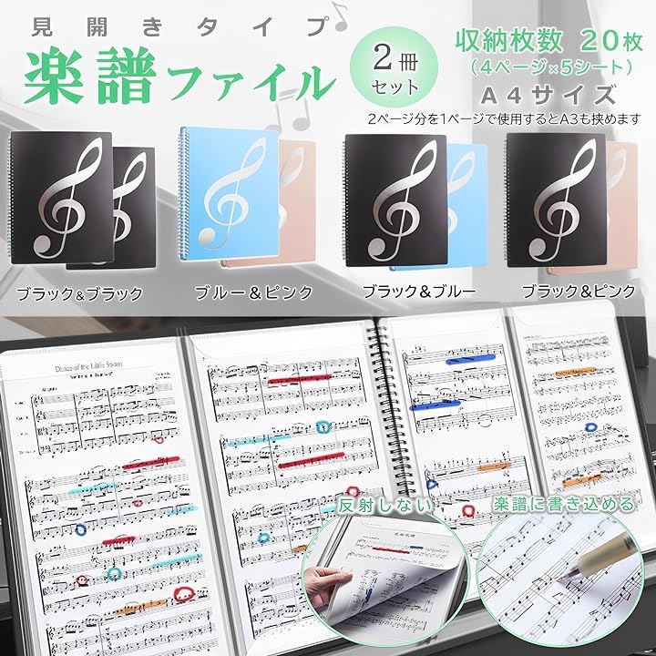 楽譜ファイル 2冊セット 4面 6ページ 見開き 作曲 譜面 レッスン 6枚収納 A4 書込み 楽譜ホルダー 演奏会 発表会 譜めくり不要 反射しない ピアノ 伴奏