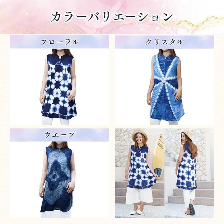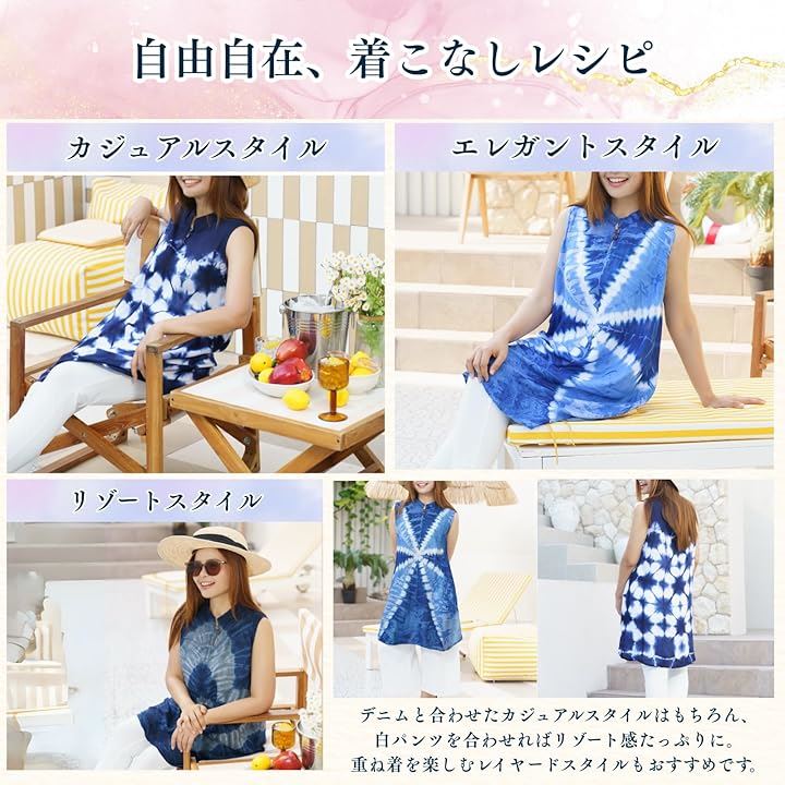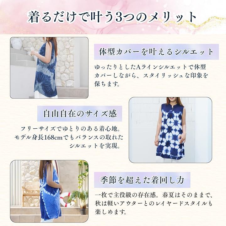 [藍染めアートで魅せる夏の装い] 絞り染めの風合いが美しいチュニック。