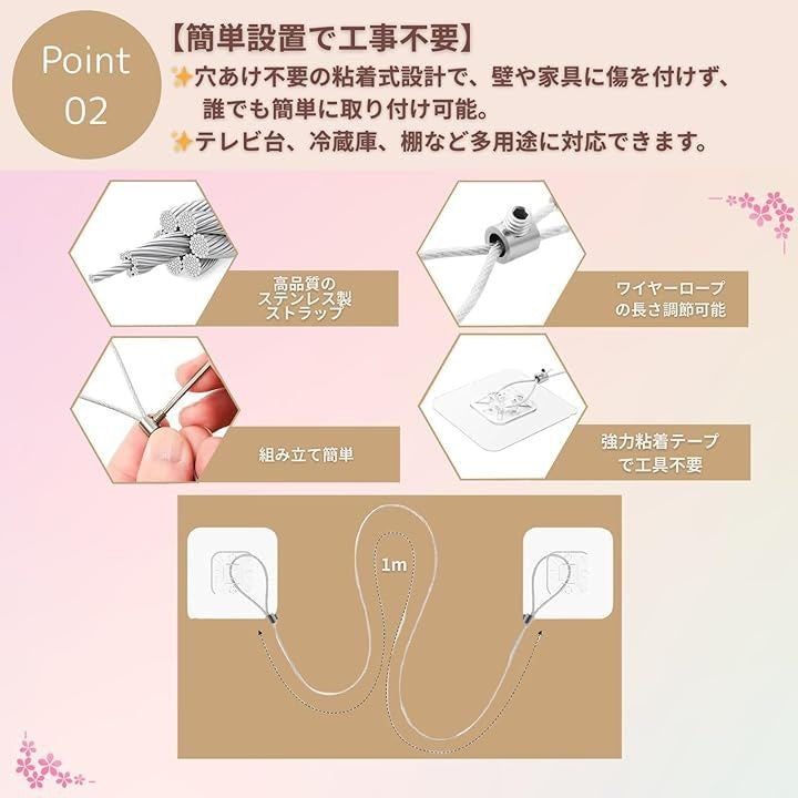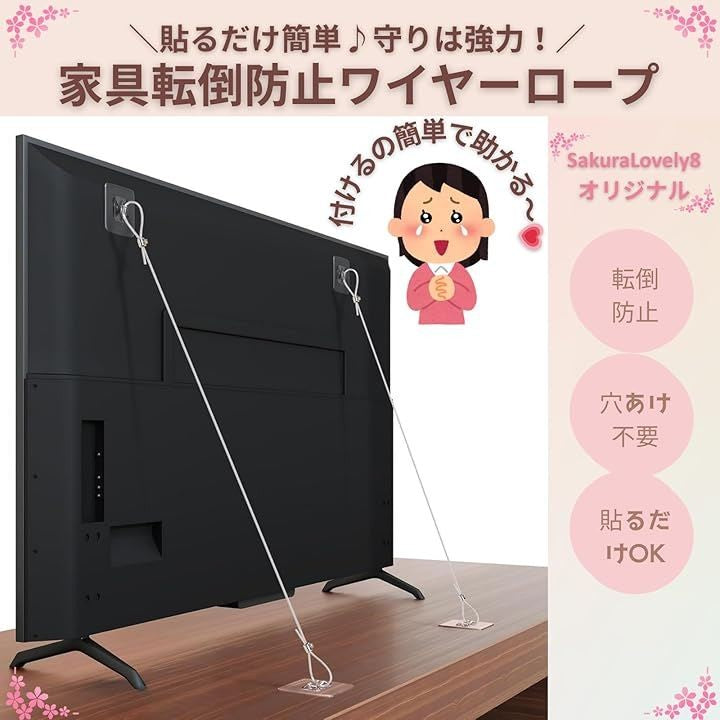 家具転倒防止 テレビ 地震対策 ワイヤー 強力 4本セット