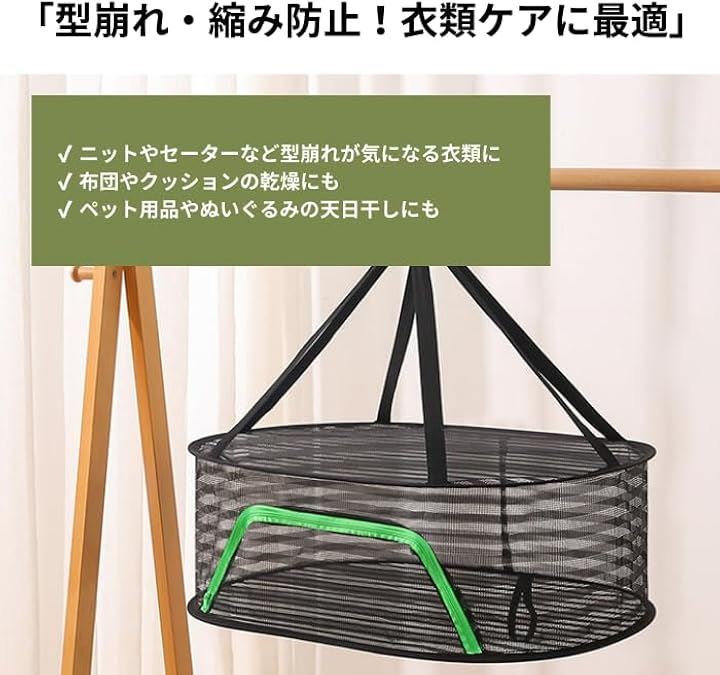 毎日の家事を効率化する便利アイテム:速乾・通気・折りたたみ・虫除けなど、乾燥に必要な機能をすべて備えた、家庭に1つあると便利な収納ネットです。