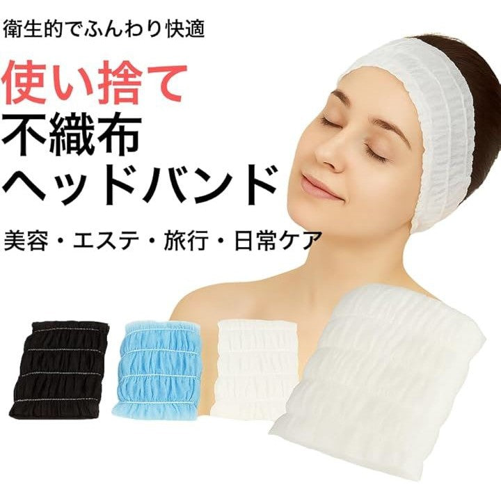 使い捨て不織布ヘアバンド メイク・洗顔用ヘアターバン 業務用ヘッドバンド