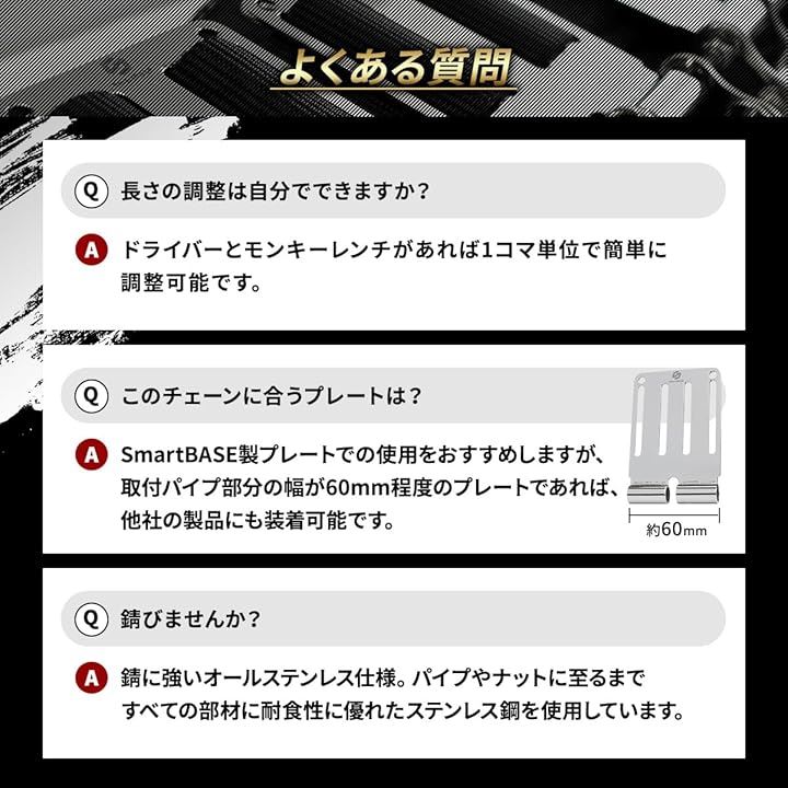 「互換品」SmartBASE 連結カスタムチェーン 金具一式 腰道具用 オールステンレス仕様 高強度 錆びにくい 長さ調整可能 汎用設計 公的機関強度試験済 |