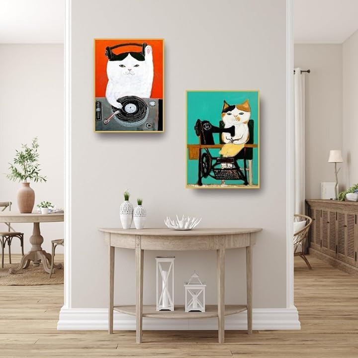 絵画 猫の絵 ゴールドフレーム 額付き 壁掛け インテリア ネコ キャンバス アート パネル モダン 抽象画 猫の絵画 ポスター