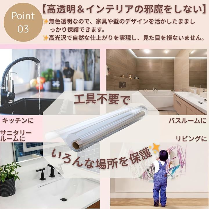 壁紙保護シート 油はね防止 防水 防汚 透明